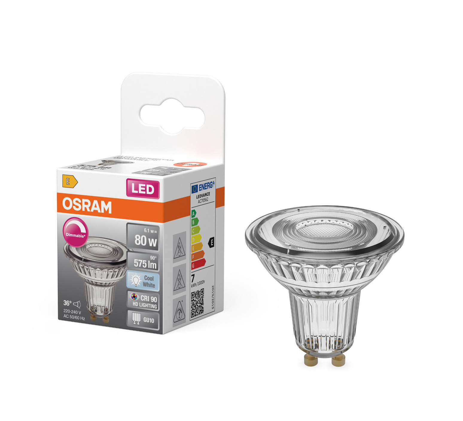 Ampoule, GU10, PAR16 36°, transparent, LED, 6,1W, 4000K, 575lm, dimmable, Ø5cm, H5,2cm - Osram