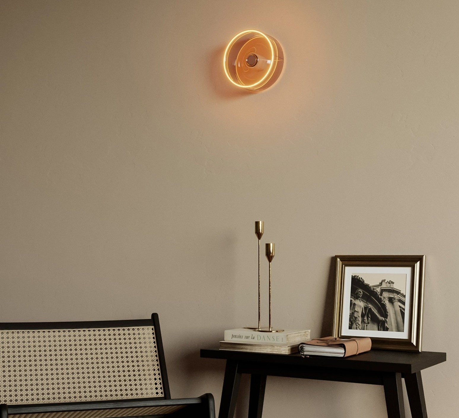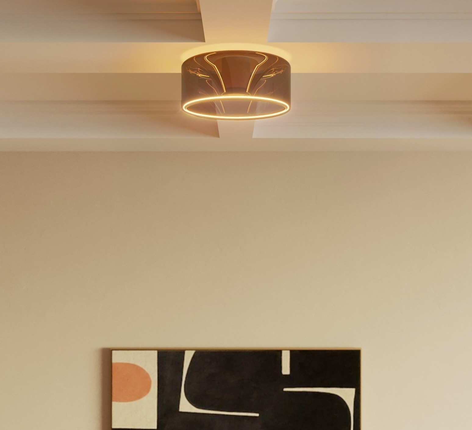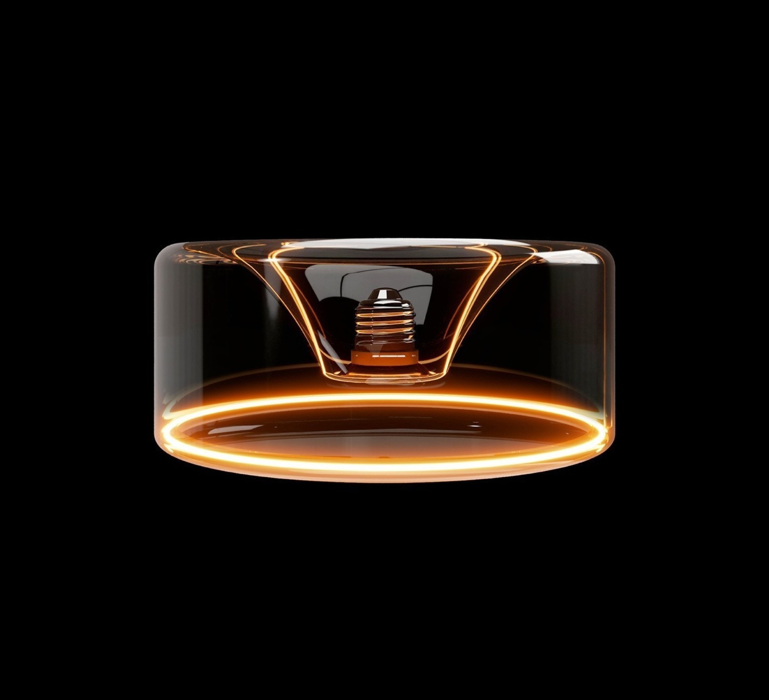 Avec sa forme d’anneau inversé en verre fumé, elle diffuse un halo doux et éthéré, tout en offrant un impact visuel saisissant. Son rendu lumineux chaud de 1900 K (équivalent à la flamme d’une bougie) enveloppe les espaces d’une atmosphère intime et élégante.