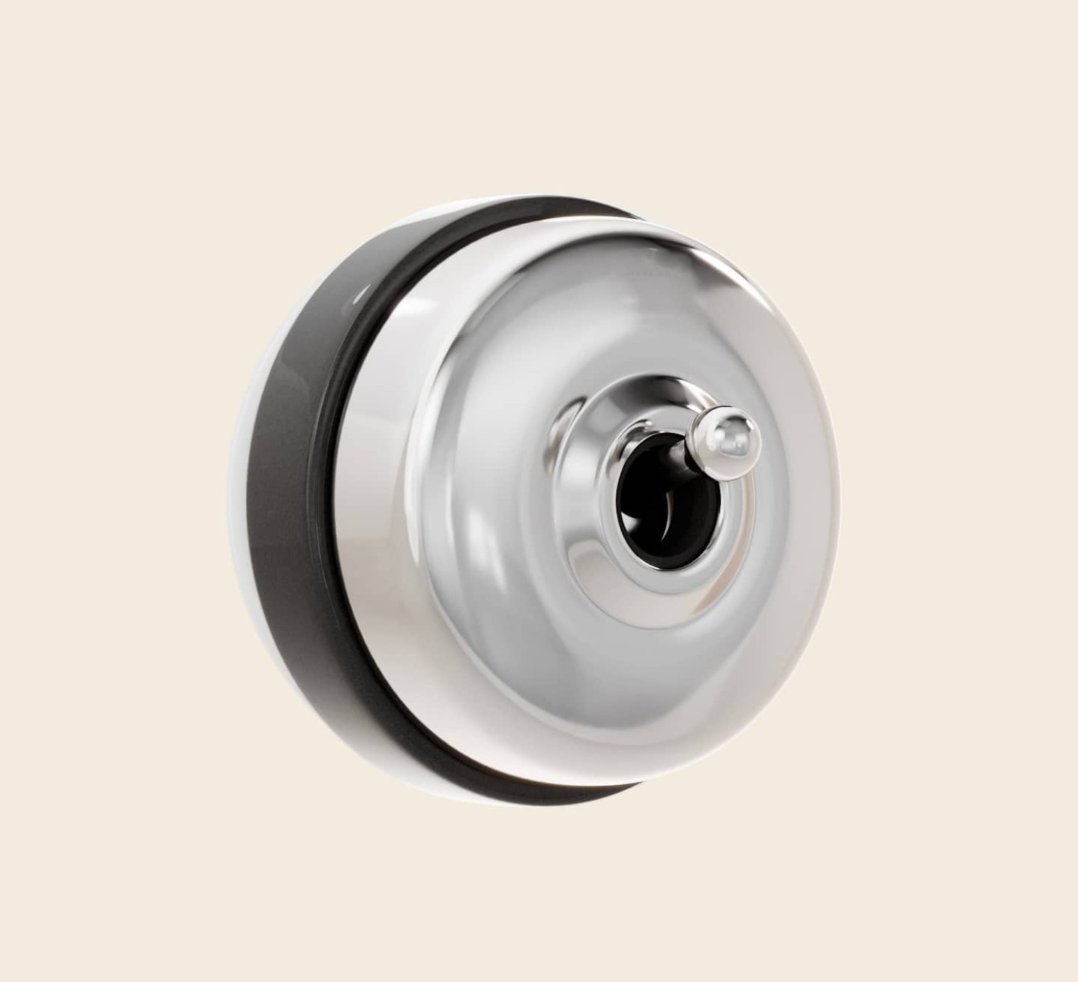 L'alliance de la porcelaine blanche et du dôme chromé brillant confère à cet interrupteur un aspect esthétique minimaliste et chic. Idéal pour apporter une touche rétro et sophistiquée à votre intérieur, cet interrupteur est parfait pour les amateurs de décoration soignée et élégante.