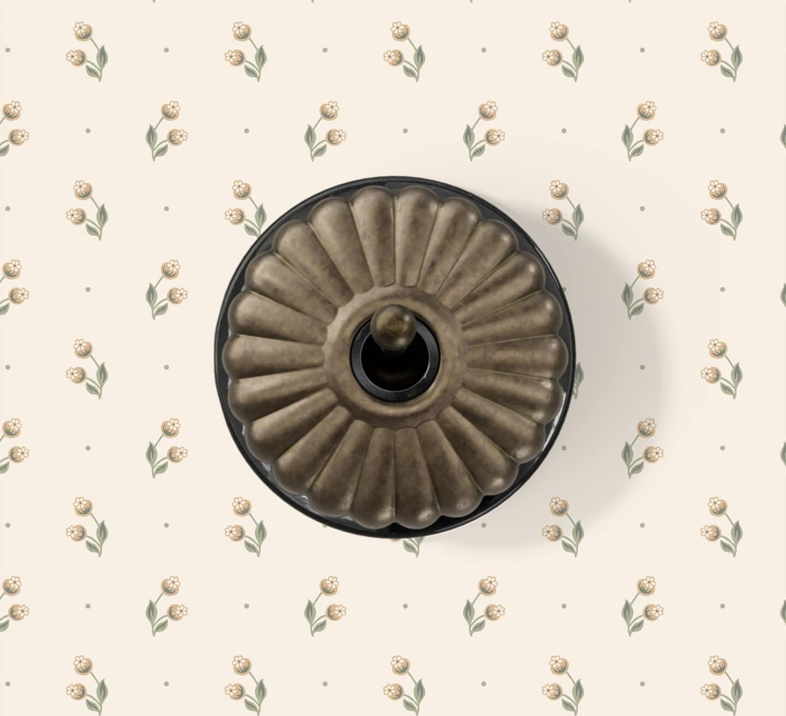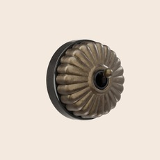 Interrupteur, Dimbler, Simple, Porcelaine noir avec dôme Charlotte bronze ancien, Va-et-vient x1, Sans passe-câble, Laiton vieilli, L6,6cm, H6,6cm - Fontini