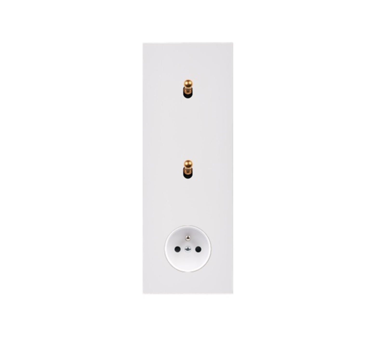 Interrupteur et Prise, Désir, Triple vertical, Blanc mat, Va-et-vient ou poussoir x1, Va-et-vient ou poussoir x1, Prise-2P+T x1, Laiton, L22,2cm, H8cm - Modelec