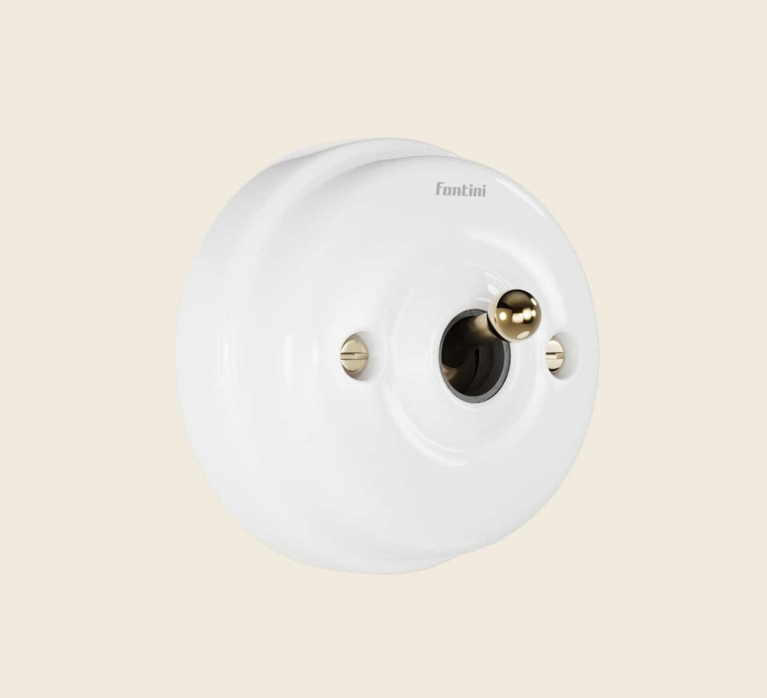 Interrupteur, Dimbler, Simple, Porcelaine blanc, Va-et-vient x1, Sans passe-câble, Doré, L6,45cm, H6,45cm - Fontini