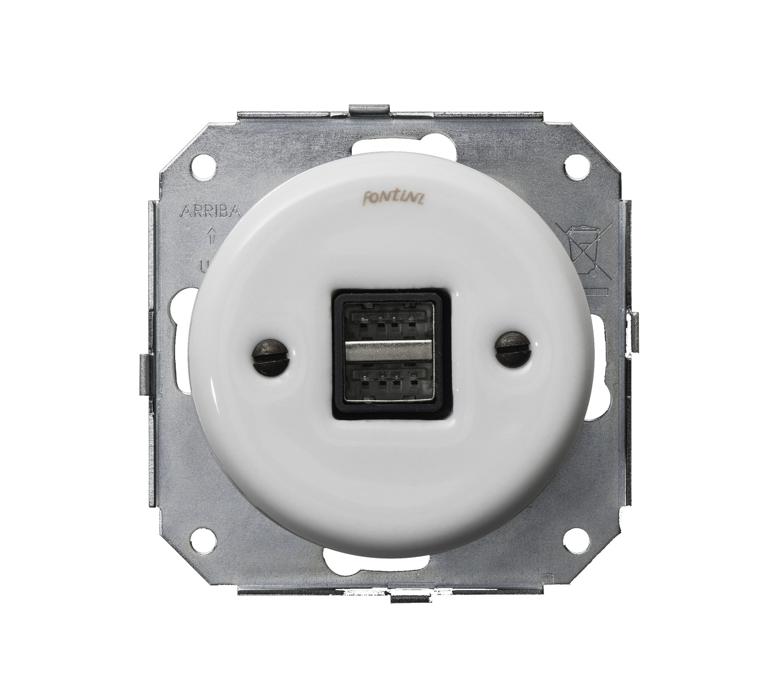 Mécanisme, Garby Colonial, Simple, Porcelaine blanc, Prise-USB A x2, L6,6cm, H6,6cm - Fontini