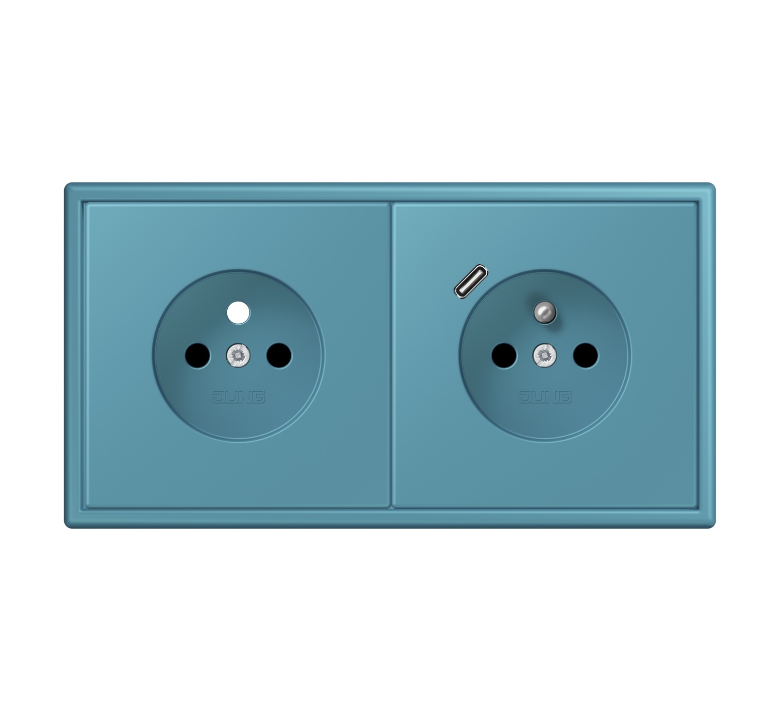 Prise, LS 990, Double horizontal, Le Corbusier Céruléen vif 32031, Prise-2P+T x1, Prise-2P+T x1, Prise-USB C x1, L15,2cm, H8,1cm - Jung