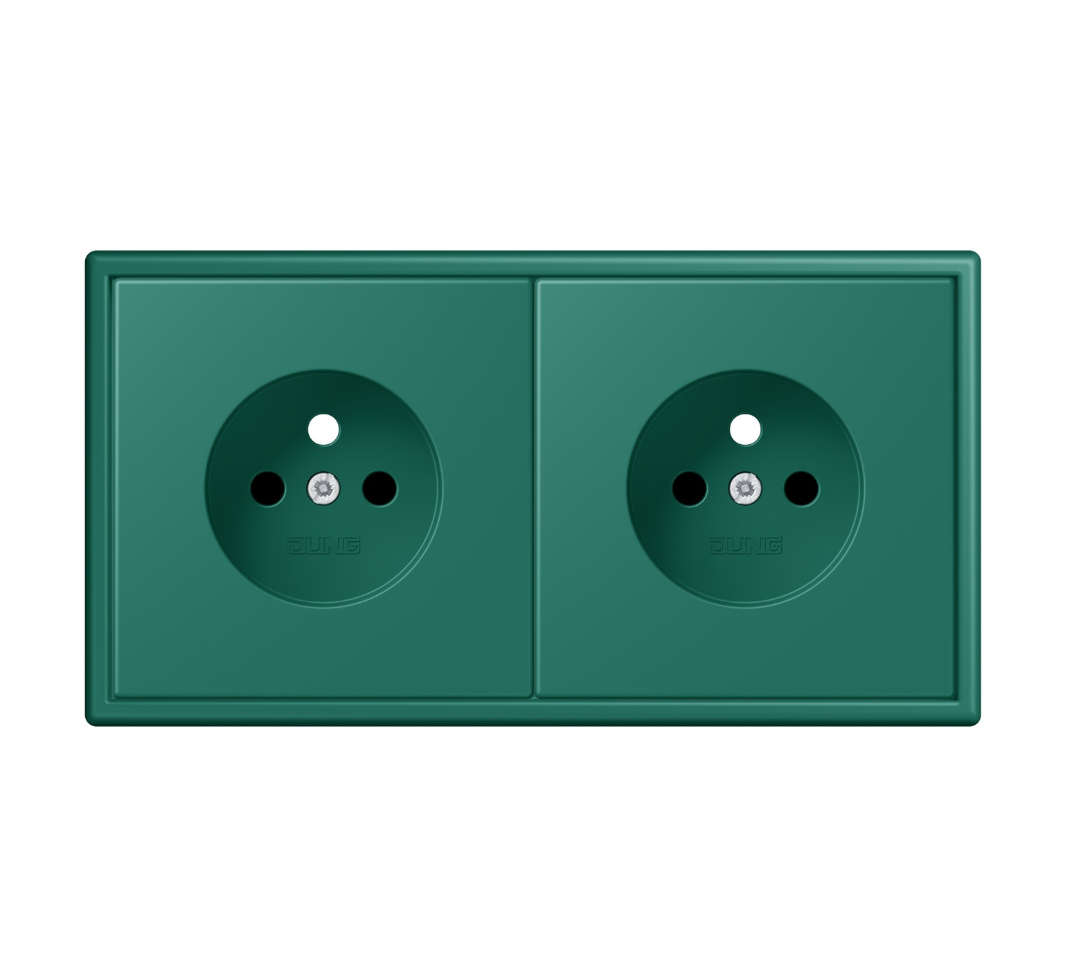 Prise, LS 990, Double horizontal, Le Corbusier Vert Anglais 32040, Prise-2P+T x2, L15,2cm, H8,1cm - Jung