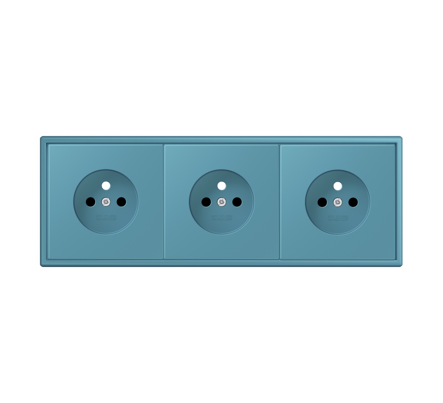 Prise, LS 990, Triple horizontal, Le Corbusier Céruléen vif 32031, Prise-2P+T x3, L22,3cm, H8,1cm - Jung