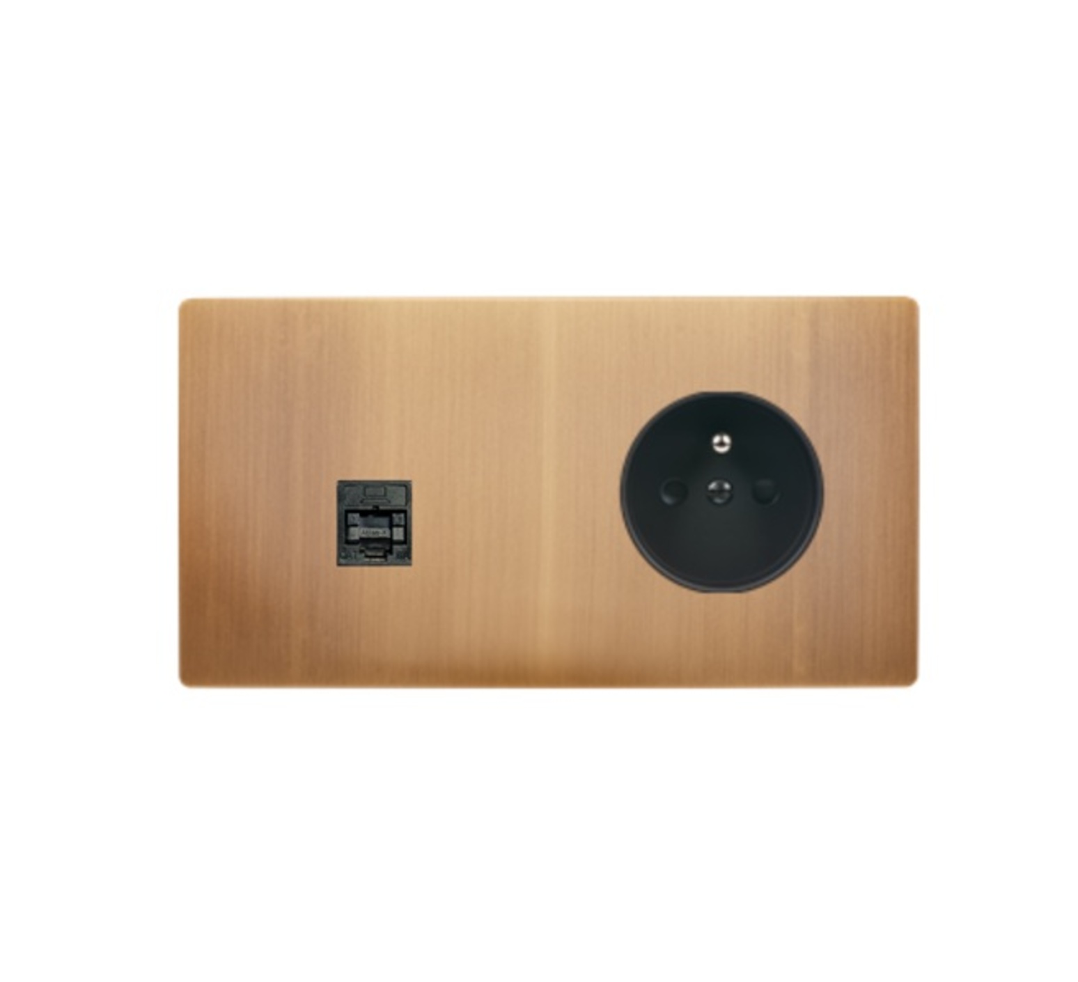 Prise, M, Double horizontal, Vieux bronze, Prise-RJ45 x1, Prise-2P+T x1, Noir, L15,1cm, H8cm - Modelec
