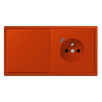 Interrupteur et Prise, LS 990, Double horizontal, Le Corbusier Roug...