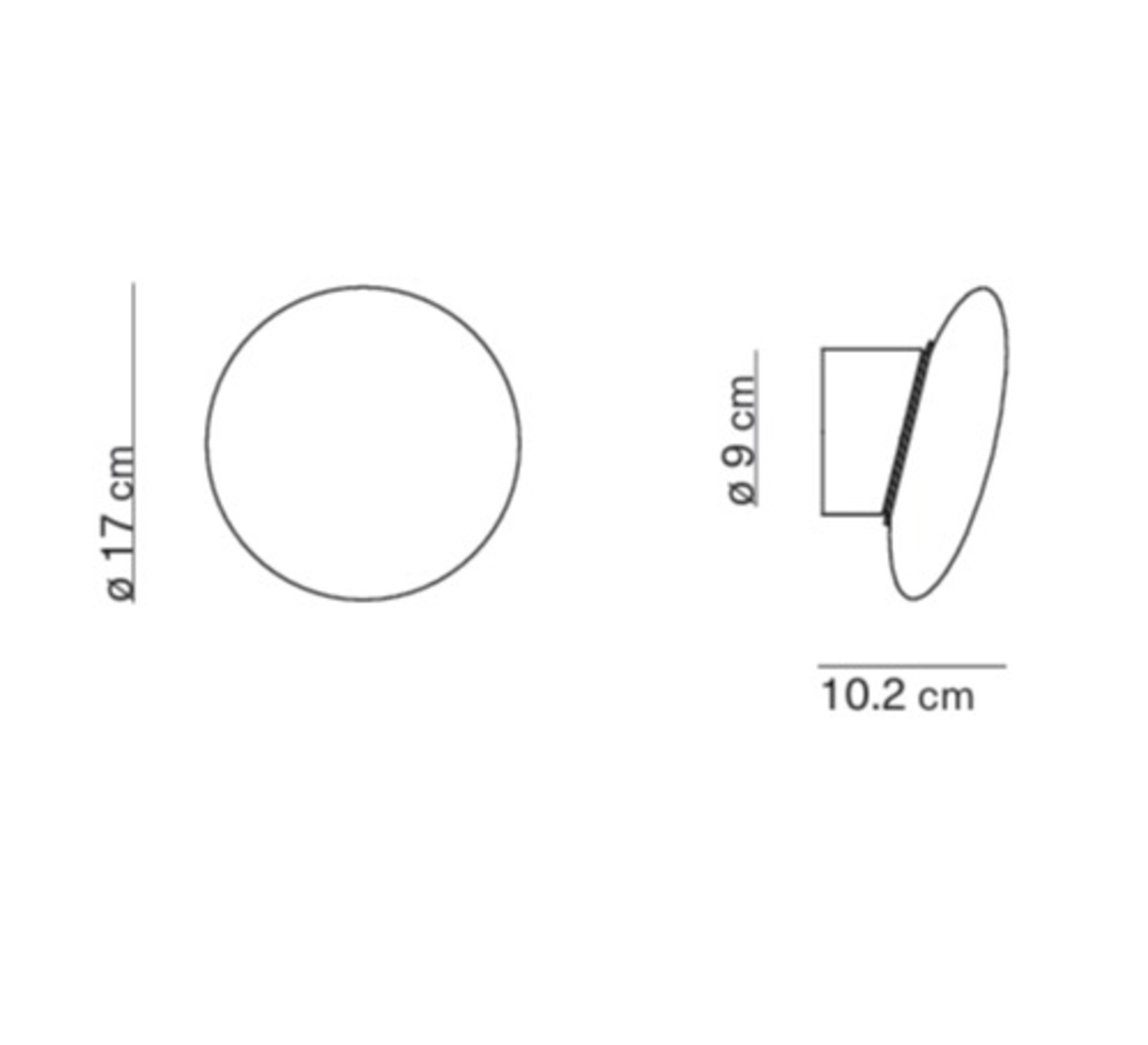 Diese fest installierte Wandleuchte enthält ein LED-Modul mit 7,7 W, das ein warmes Licht von 2700 K mit einem Lichtstrom von 1092 Lumen und einer ausgezeichneten Farbwiedergabe (CRI > 90) ausstrahlt. Die Beleuchtung ist 360° diffus, blendfrei und dimmbar mit Phasenanschnitt. Sie ist dank der Schutzart IP55 gegen Wasser und Staub geschützt und eignet sich für feuchte Umgebungen (Typ überdachter Außenbereich oder Badezimmer). Maße: Ø 17 cm, Tiefe 10,2 cm.