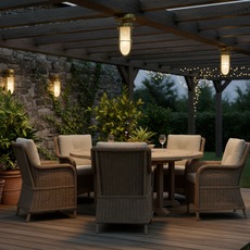 Sie ist für den Einsatz im Freien und in feuchten Innenräumen geeignet, da sie die Schutzart IP65 besitzt, was bedeutet, dass sie strahlwasser- und staubgeschützt ist. Sie kann auf überdachten Terrassen, Veranden, in Küchen, Badezimmern oder anderen Räumen installiert werden, in denen eine robuste und dekorative Lösung benötigt wird. Ihr nach unten gerichtetes Licht ist ideal, um Verkehrsbereiche zu markieren, eine stimmungsvolle Beleuchtung zu schaffen oder Oberflächen aufzuwerten und dabei einen Hauch von handwerklicher Authentizität zu verleihen.