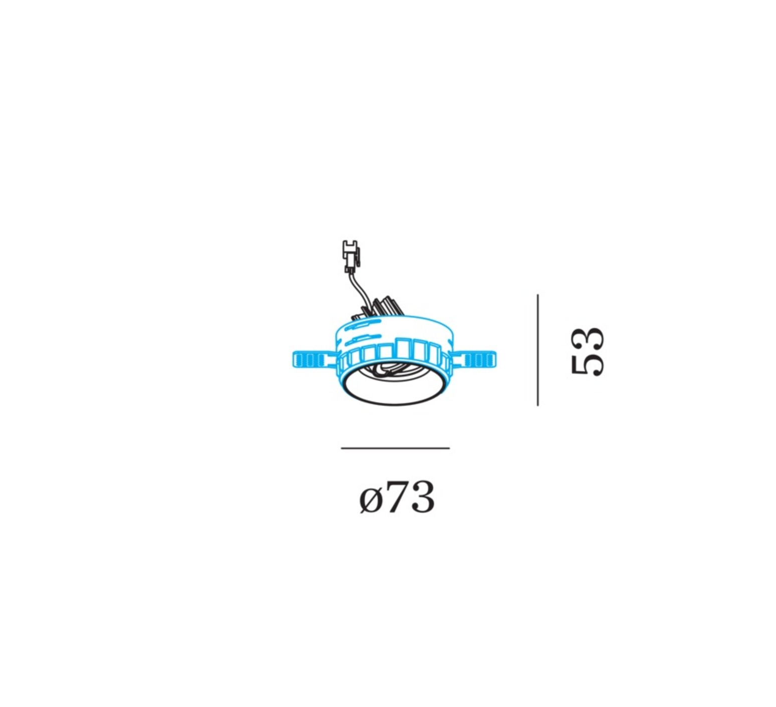 Deep Adjust 1.0 trimless hat einen Durchmesser von 7,3 cm und eine Höhe von 5,3 cm. Seine Einbautiefe beträgt 6,5cm. Die LED-Lichtquelle ist im Lieferumfang enthalten. Der Treiber ist nicht integriert, ist aber für den Betrieb der Leuchte unerlässlich.