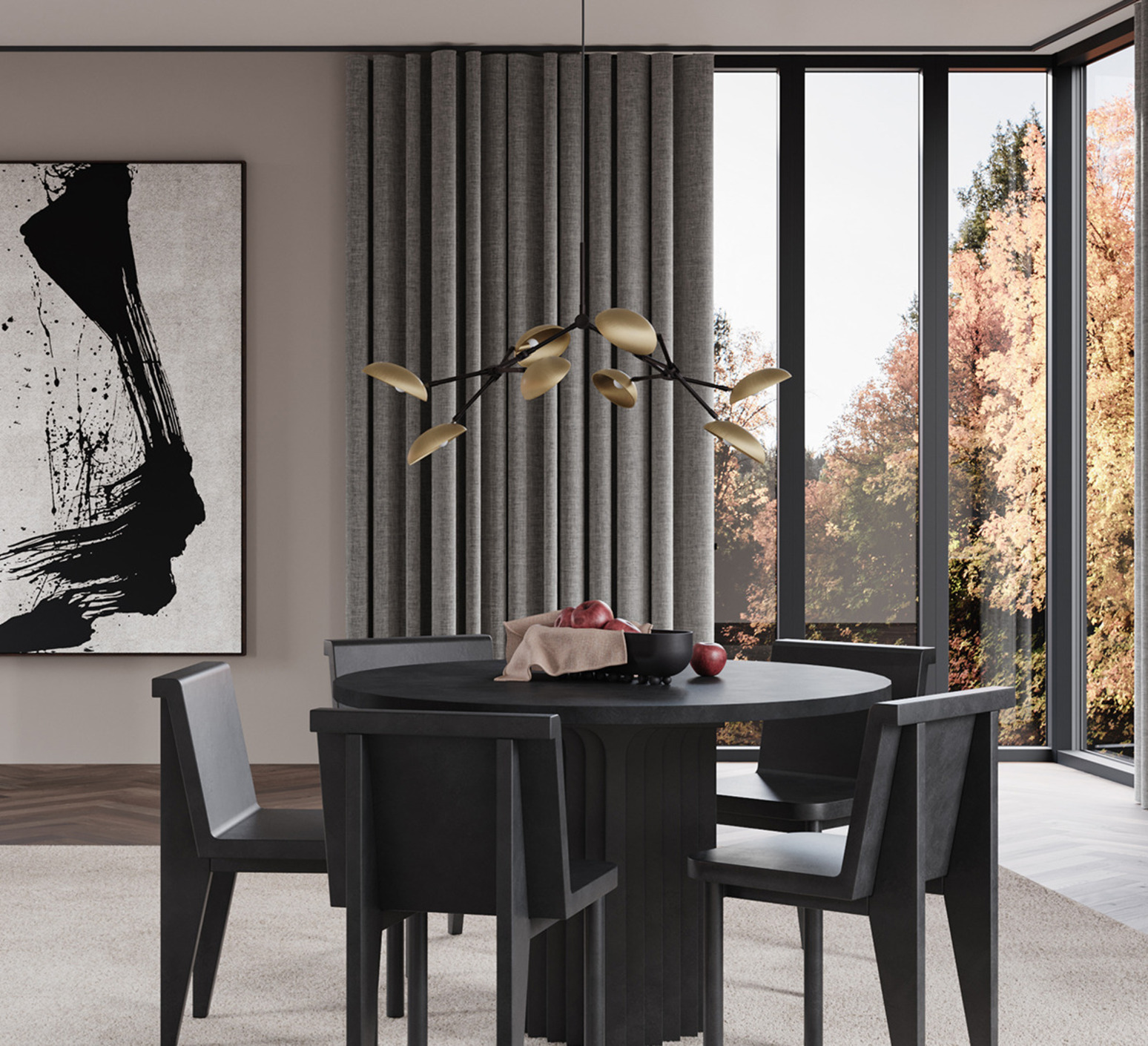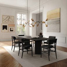 Inspiriert vom dänischen Modernismus und zeitlosen Ikonen... Dieser große Kronleuchter im zeitgenössischen Stil bewahrt den Charme der 50er Jahre. Sehr elegant und grafisch aufgeräumt sorgt dieser Kronleuchter für eine sehr angenehme und optimale Lichtverteilung. Die tropfenförmigen Lampenschirme passen sich perfekt an die Lichtstrahlen an und sorgen dank der schwarz oxidierten Reflektoren für eine natürlich warme Beleuchtung. Eine perfekte Leuchte, um in allen Innenräumen eine warme Atmosphäre zu schaffen.