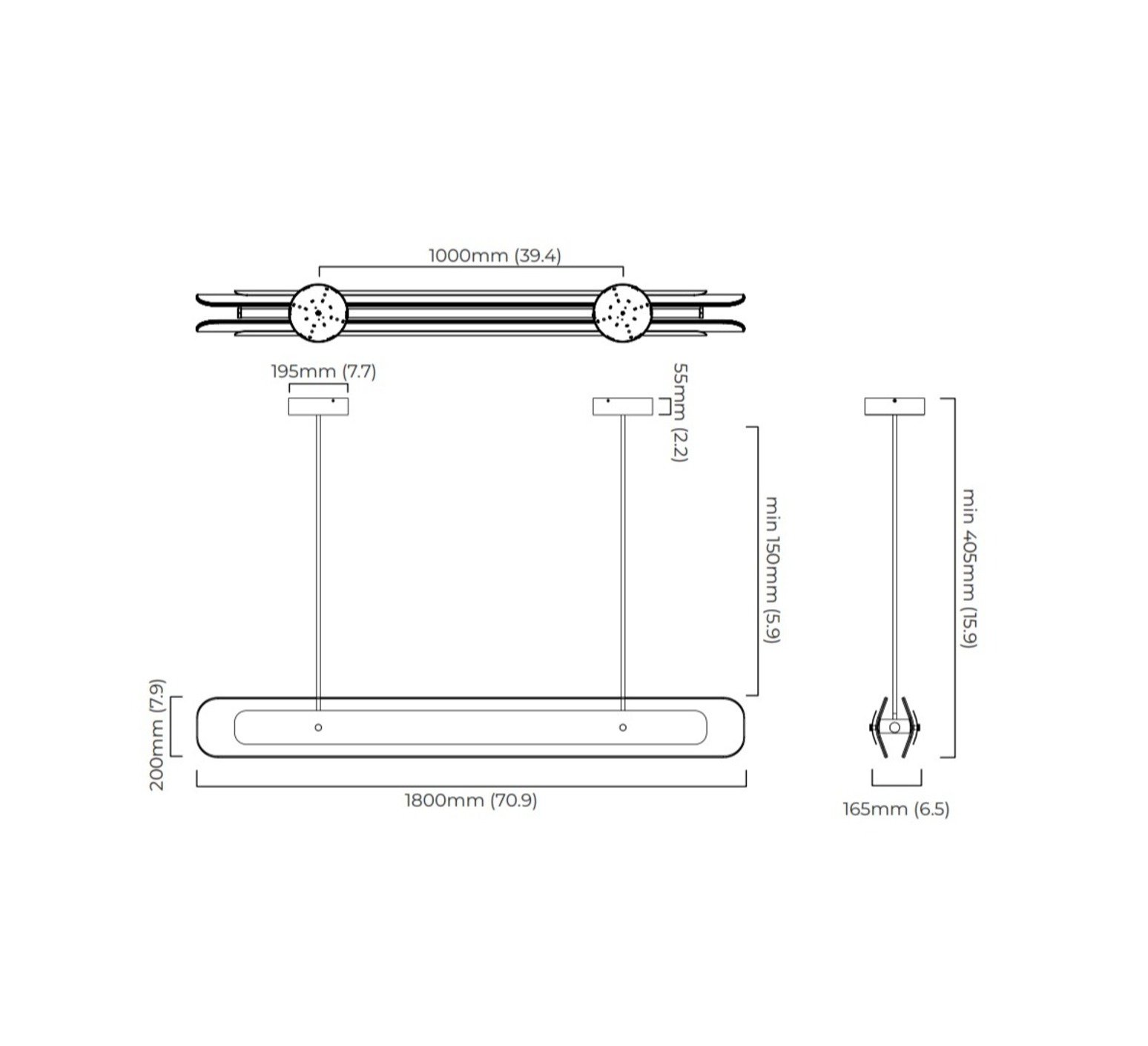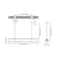 Die Pendelleuchte ist 180 cm lang und 20 cm hoch.