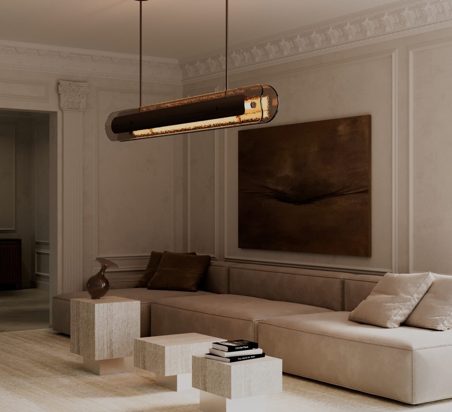 Als Dekoration eignet sich die Hängeleuchte Contour ideal über einem Esstisch oder in einem Wohnzimmer über einem Couchtisch, wo ihre längliche Form den Raum optisch strukturiert, ohne ihn zu überladen. Sie passt sowohl zu modernen als auch zu eher klassischen Einrichtungen. Ihr weiches, diffuses Licht schafft eine warme, elegante Atmosphäre und eignet sich perfekt, um einen Wohnbereich subtil und charaktervoll zu unterstreichen.