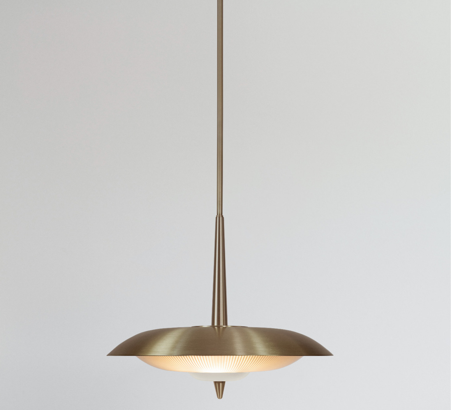 Ihr raffiniertes Design und die edlen Materialien wie Messing und Glas verleihen ihr ein zeitloses Aussehen. Ihr cremefarbenes Zentrum zieht die Blicke auf sich und setzt einen subtilen Farbakzent. Diese Hängeleuchte wird Ihr Zuhause erhellen und ihm gleichzeitig einen Hauch von Raffinesse verleihen.