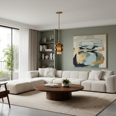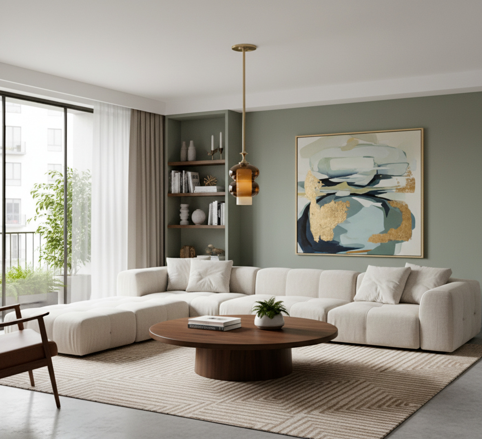 Hängeleuchte, Prince Profil 2, Hellbeige und Olivin, gebürstetes Messing, Ø15cm, H20,5cm - SkLO Studio