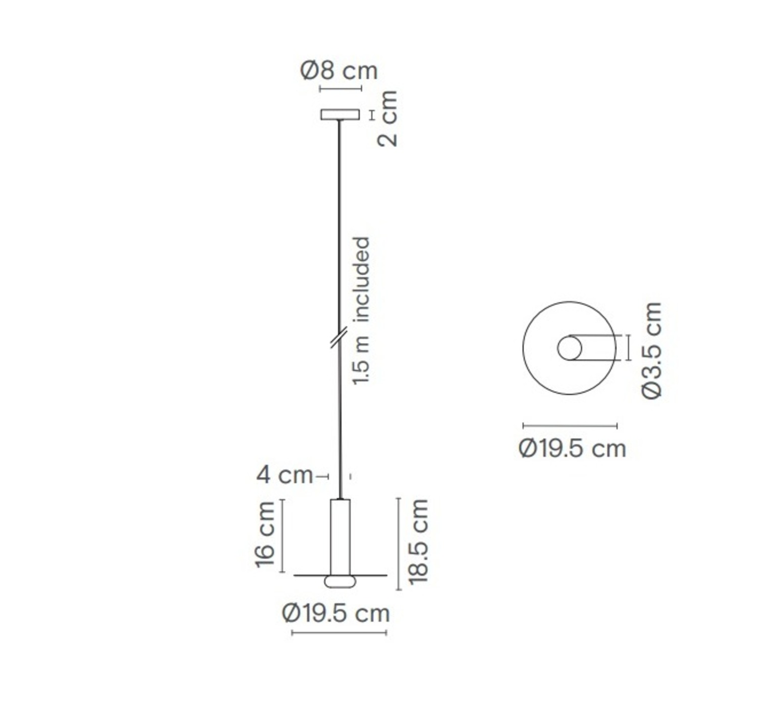 Die Hängeleuchte Reina hat einen Durchmesser von 19,5 cm und eine Höhe von 18,5 cm.