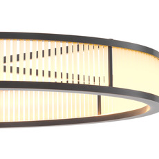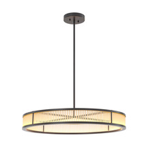 Mit einer integrierten LED-Lichtquelle ausgestattet, verbreitet sie ein homogenes 360°-Licht mit einer Temperatur von 2700 K und einem Lichtstrom von 2300 lm. Ihr Durchmesser beträgt 90 cm bei einer Höhe von 15 cm. Sie wird mit drei austauschbaren Stäben (10, 30 und 50 cm) geliefert und kann mit einem 1,1 m langen Bronzekabel als Halbeinbau-Deckenleuchte oder Hängeleuchte verwendet werden.