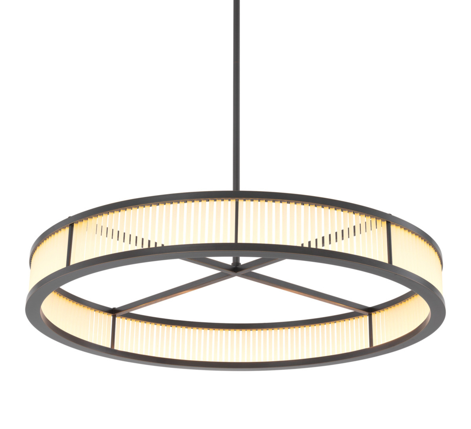 Hängeleuchte, Thibaud L, Bronze, gefrostetes Glas, LED, 2700K, 2300lm, Ø90cm, H15cm - Eichholtz
