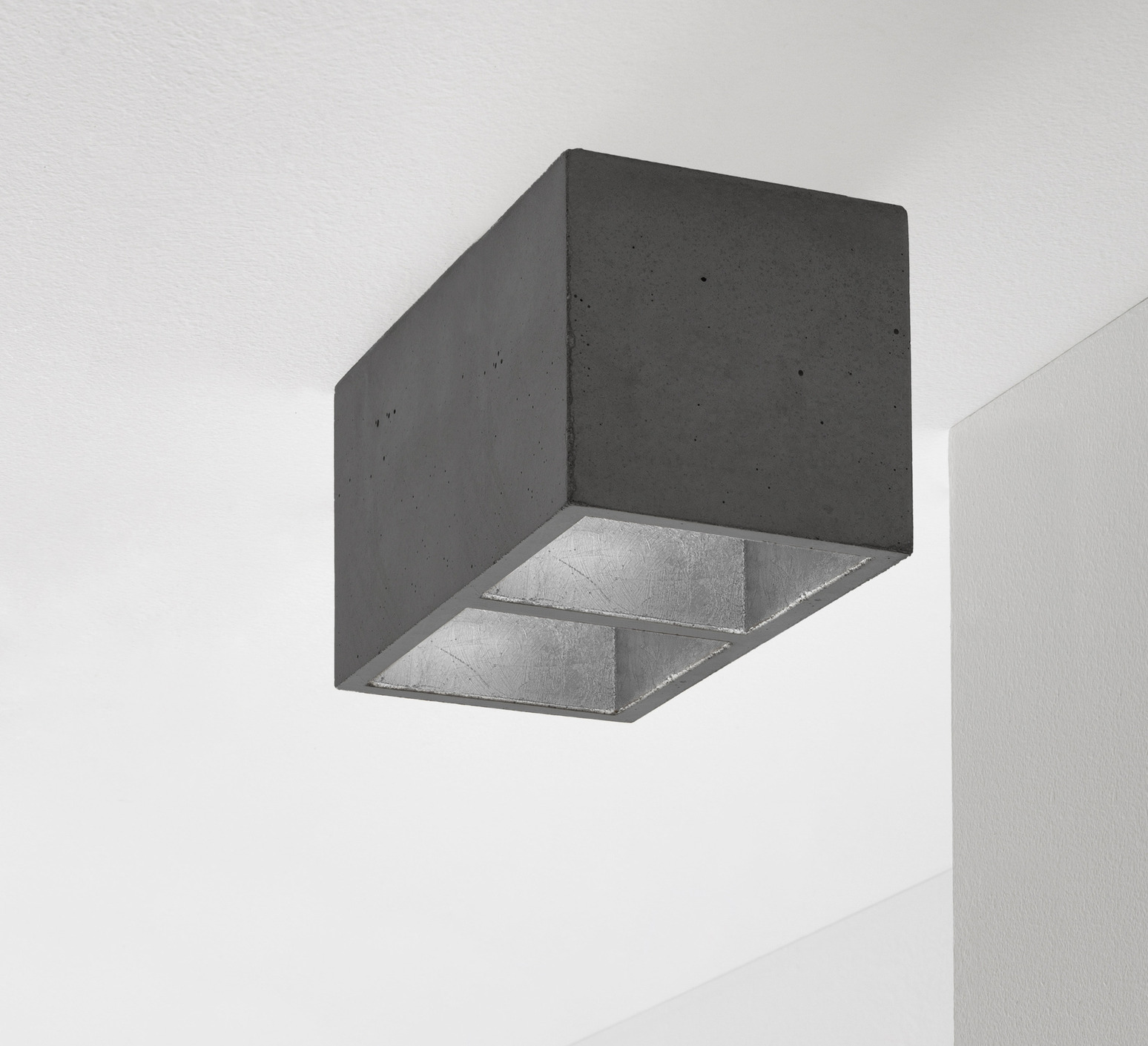 Ihre kubische Ästhetik kombiniert matten dunkelgrauen Beton mit silbernen Akzenten und schafft so einen eleganten und zeitgemäßen Kontrast. Der Spot [B7]² hat eine starke grafische Präsenz, bleibt aber gleichzeitig schlicht, wodurch er sich ideal für die Veredelung eines natürlichen oder modernen Einrichtungsstils eignet. Er passt perfekt in ein Wohnzimmer, einen Flur oder einen Arbeitsbereich, einzeln oder in einer Komposition, um dekorative Lichtakzente zu setzen.