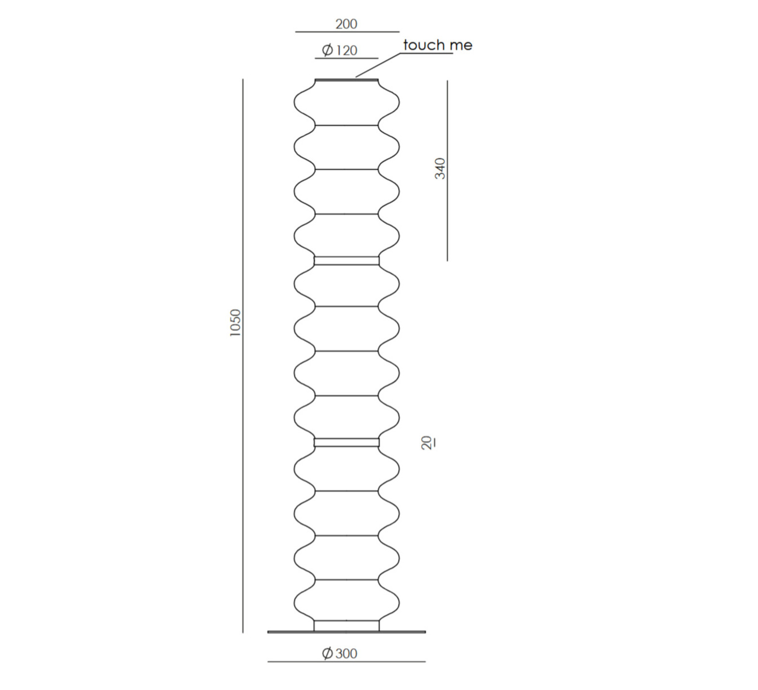 Ausgestattet mit einem integrierten 28W-LED-Modul, das 2000 Lumen in warmem Licht 2700K ausstrahlt, gibt sie ein diffuses 360°-Licht ab. Die Intensität ist in TRIAC dimmbar und wird einfach durch Berühren der Oberseite der Stehleuchte reguliert, was einen Lichtkomfort bietet, der je nach gewünschter Stimmung moduliert werden kann.