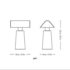 Die komplett aus lackiertem Stahl gefertigte Caret hat ein geometrisches Design, das aus einer abgerundeten Basis und einer langen, pyramidenförmigen Spitze besteht, die ein weiches, diffuses Licht ausstrahlt. Sie eignet sich perfekt als Beistelllampe in einem Schlafzimmer, Wohnzimmer, einer Bibliothek oder einem Büro. Dank IP44 ist sie auch ideal, um Tische im Außenbereich von Hotels und Restaurants zu beleuchten.