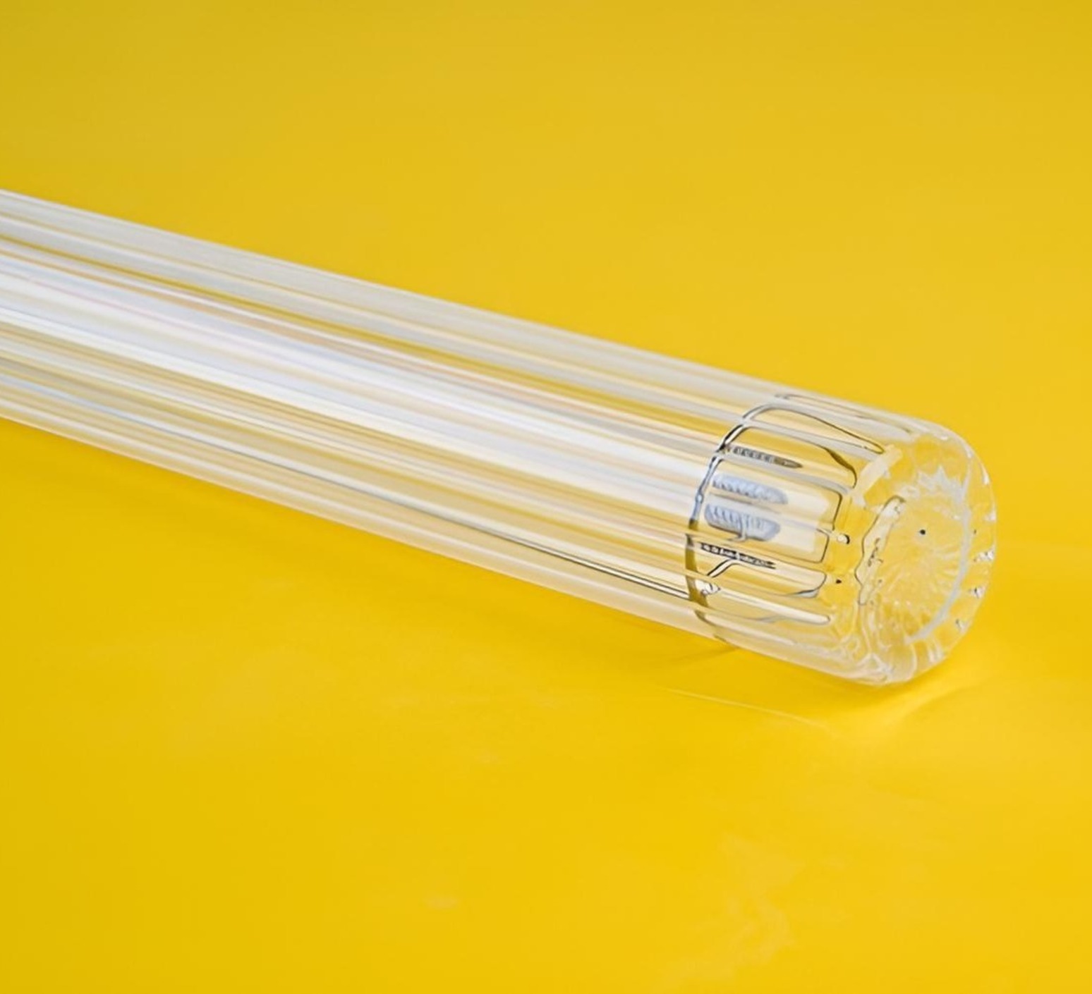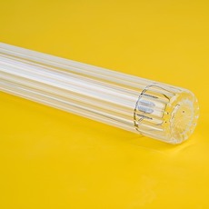 Die Marke Zangra präsentiert ihre Crystal-Kollektion mit der Wand- oder Deckenleuchte Messing mit ihrer röhrenförmigen Glühbirne aus geriffeltem Klarglas.