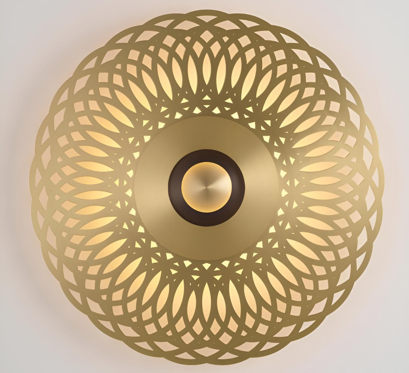 Die Atmos Lace Wandleuchte hat einen Durchmesser von 79,3 cm. Sie wird mit einer LED-Lichtquelle, 2700 Kelvin und 1700 Lumen (warmweiß) geliefert. Dieses Modell ist in anderen Formaten und in vielen verschiedenen Ausführungen erhältlich.