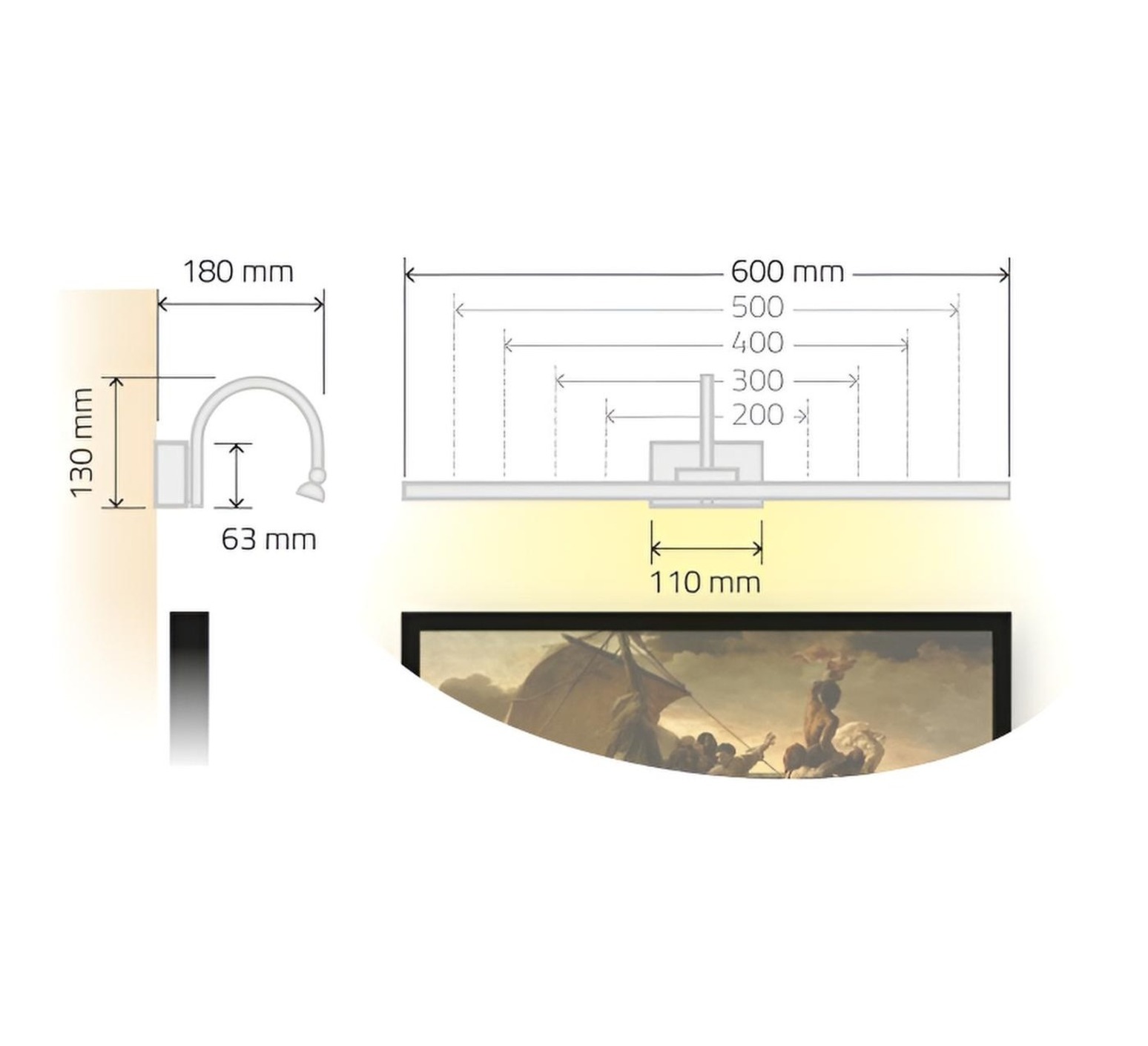 Die Wandleuchte für Gemälde Kyoto der Marke Tekni Led erfüllt die genauen Anforderungen an die Wandbeleuchtung, insbesondere an die gezielte Beleuchtung von Kunstwerken oder vertikalen Flächen.