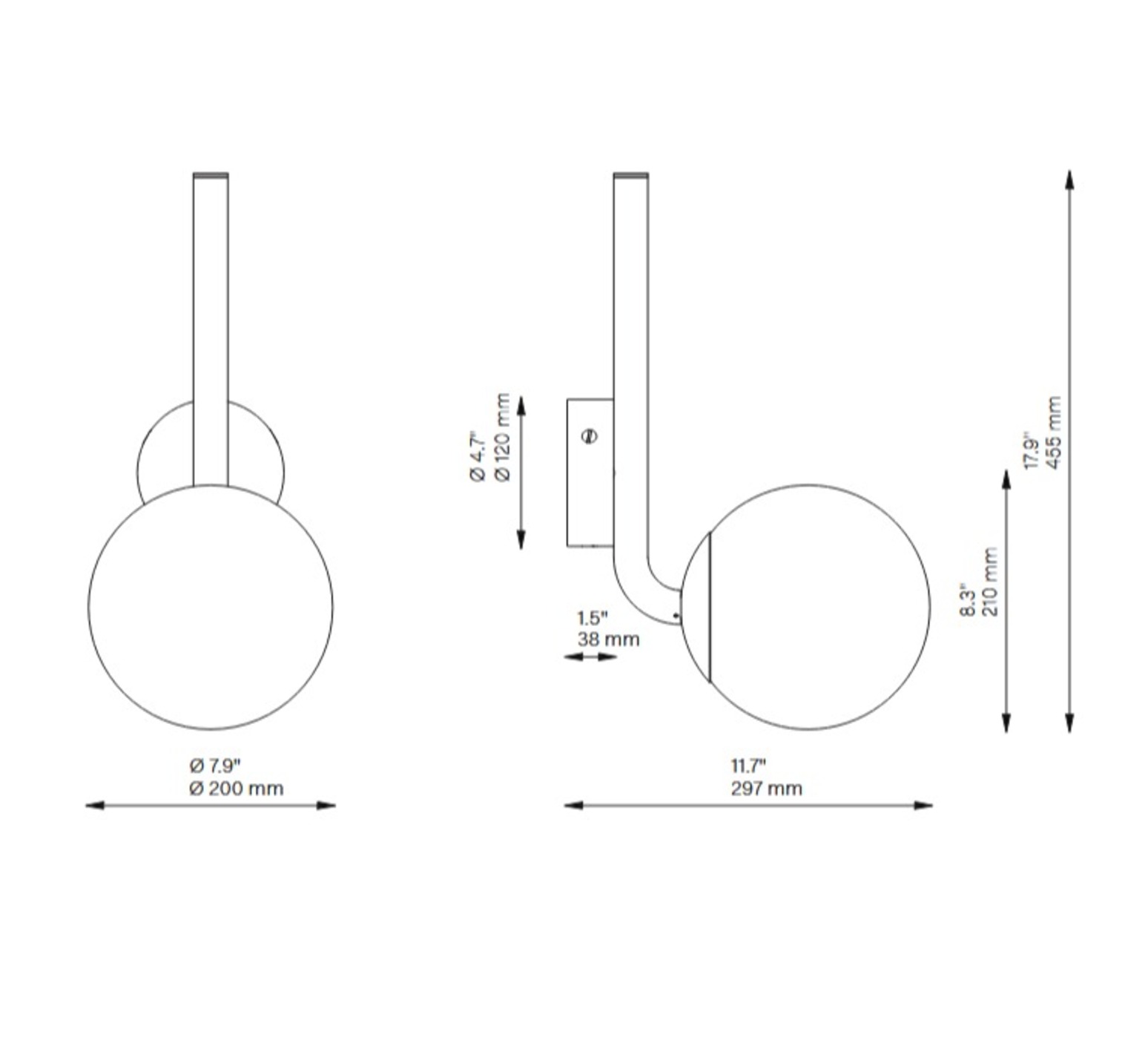 Die Wandleuchte ist 45,5 cm hoch und 20 cm lang.