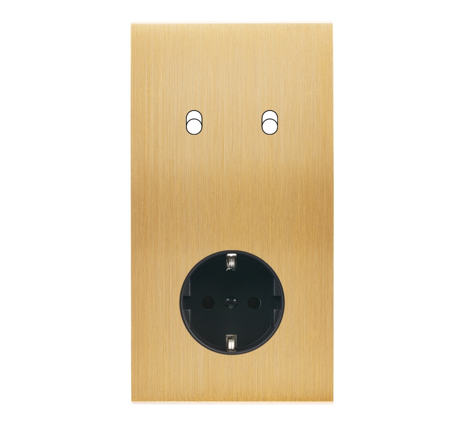 Faceplate, Confidence, Double vertical, Brushed brass, Switch x2, Schuko socket x1, L8cm, H15,1cm - Modelec