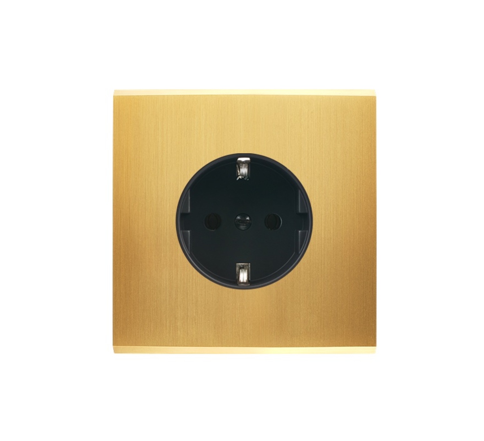Front, Confidence, Single, Satin brass, Schuko socket x1, L8cm, H8cm - Modelec