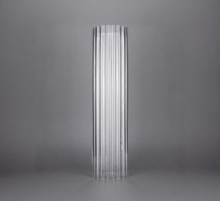 Lampshade, cylindrical in striated glass, transparent, Ø9.6cm, H37.5cm - Mullan Lighting