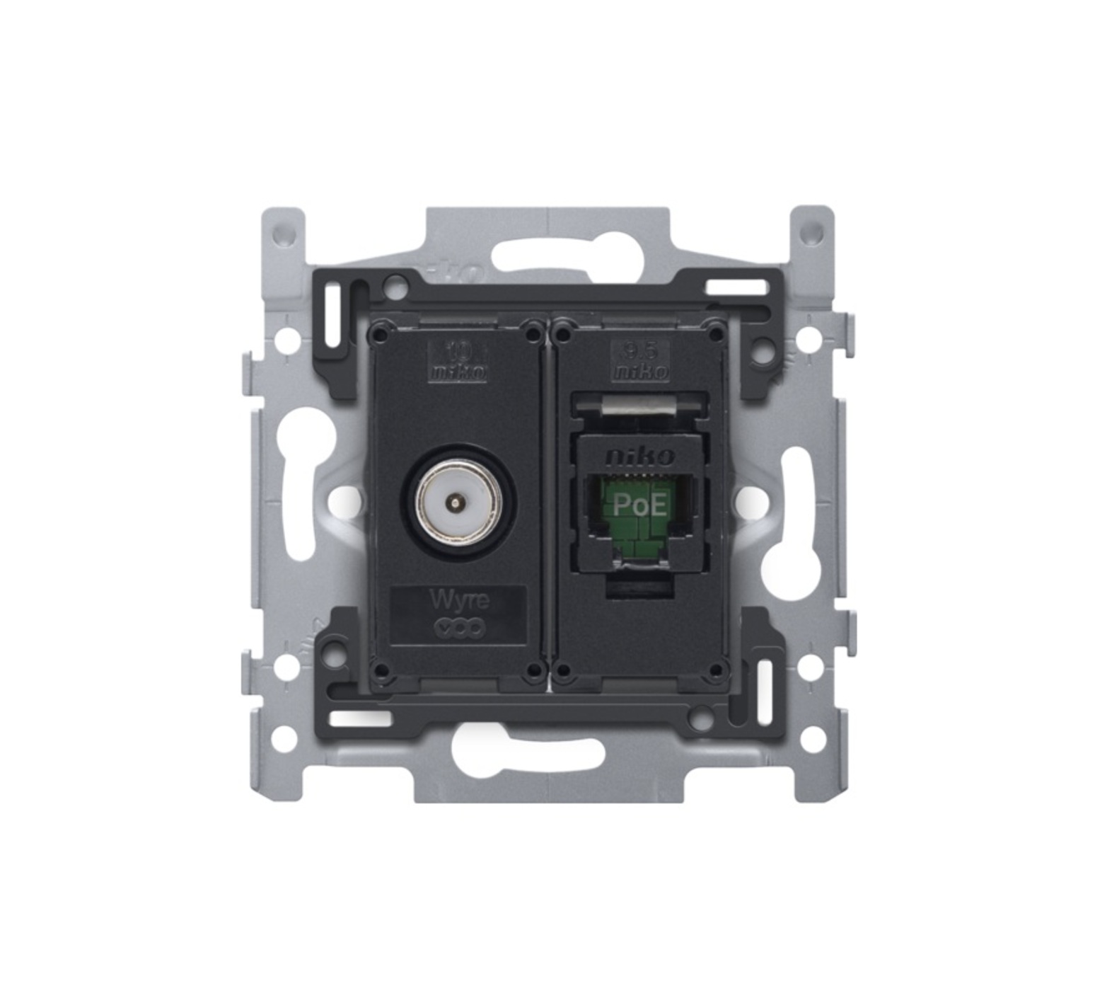 Mechanism, Rocker, Single, TV-socket x1 and RJ45-socket x1, L7,3cm, H7,3cm - Niko