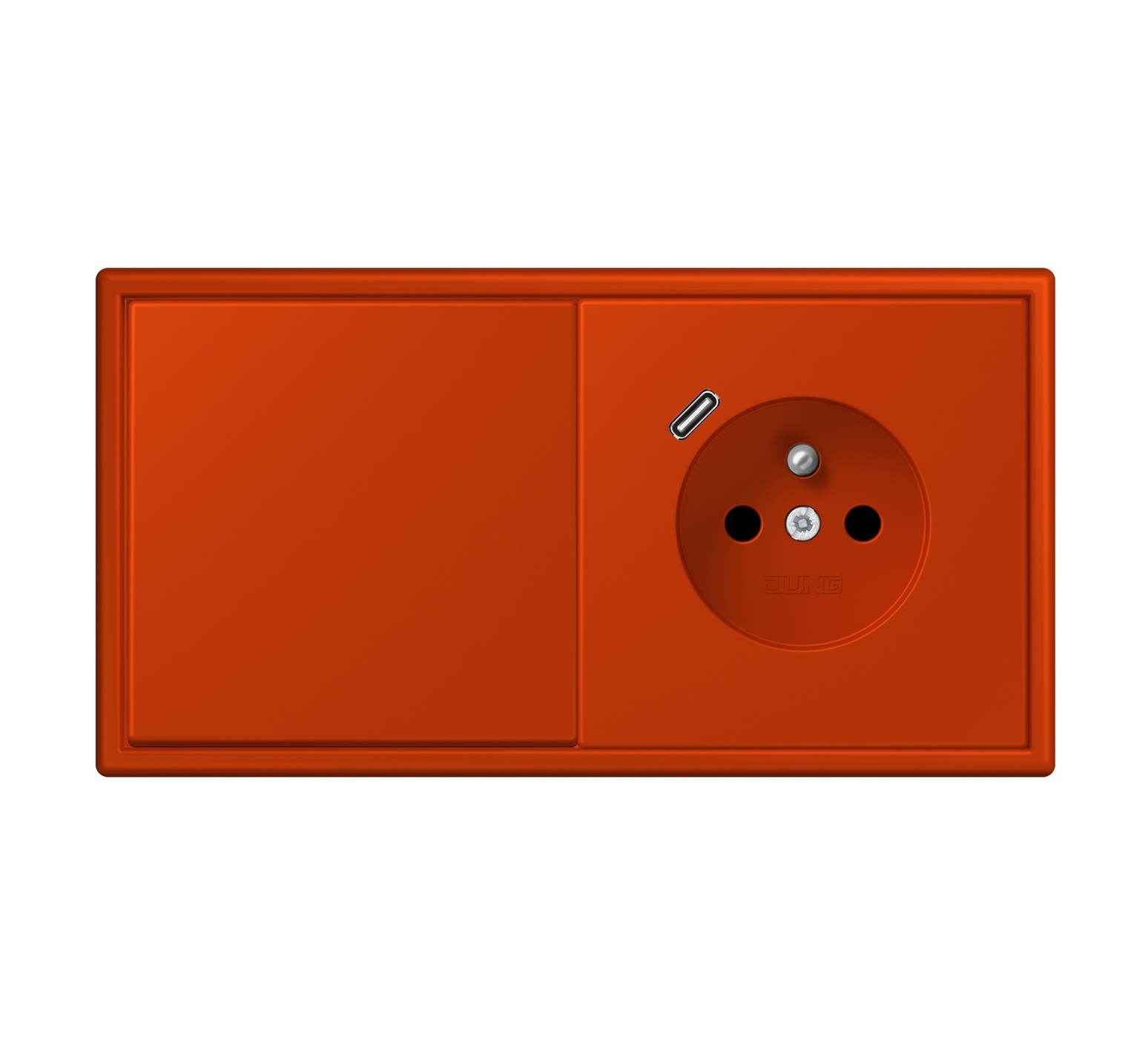 Switch and Socket, LS 990, Double horizontal, Le Corbusier Vermilion red 59 4320A, Pushbutton x1, Socket-2P+T x1, USB C-socket x1, L15,2cm, H8,1cm - Jung