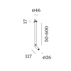 The luminaire measures 60cm in height and 2.6cm in diameter.
