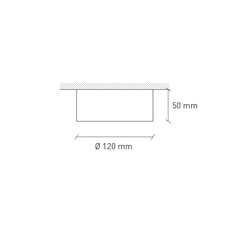 Rino measures 12 cm in diameter and 5 cm in height. Its light source (1 x GX53) is not included.