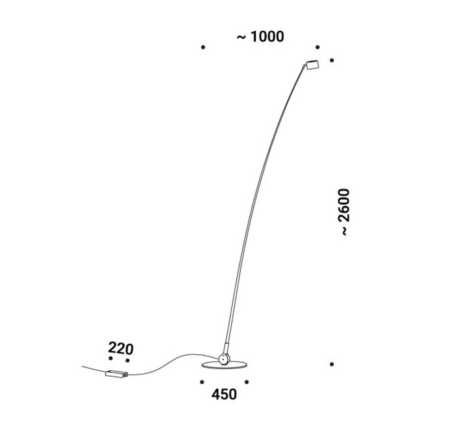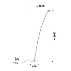 Technically, the Sampei 290 is equipped with an integrated LED light source, offering a color temperature of 2700K and a luminous flux of 1808 lumens. It is dimmable, allowing the light intensity to be adjusted as required. The floor lamp measures 100 cm long and 260 cm high, with a direct and directional lighting option. Made from metal and fiberglass, this luminaire guarantees exceptional durability.