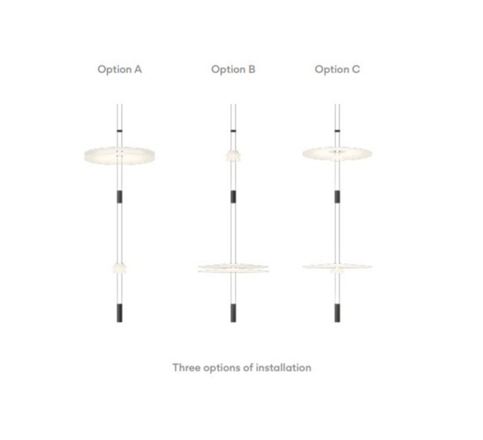 The Flamingo Mini collection creates multi-layered silhouettes with an intriguing, avant-garde aesthetic. This suspension light evokes the image of a bird hovering above, creating an intimate ambience by diffusing gradations of soothing light through its translucent diffuser. Its deconstructed design divides an LED light source and layers of translucent diffusers, creating soft shades of illumination. The diffusers offer various configurations, with each LED acting as a spotlight directed upwards or downwards to produce an atmospheric effect.