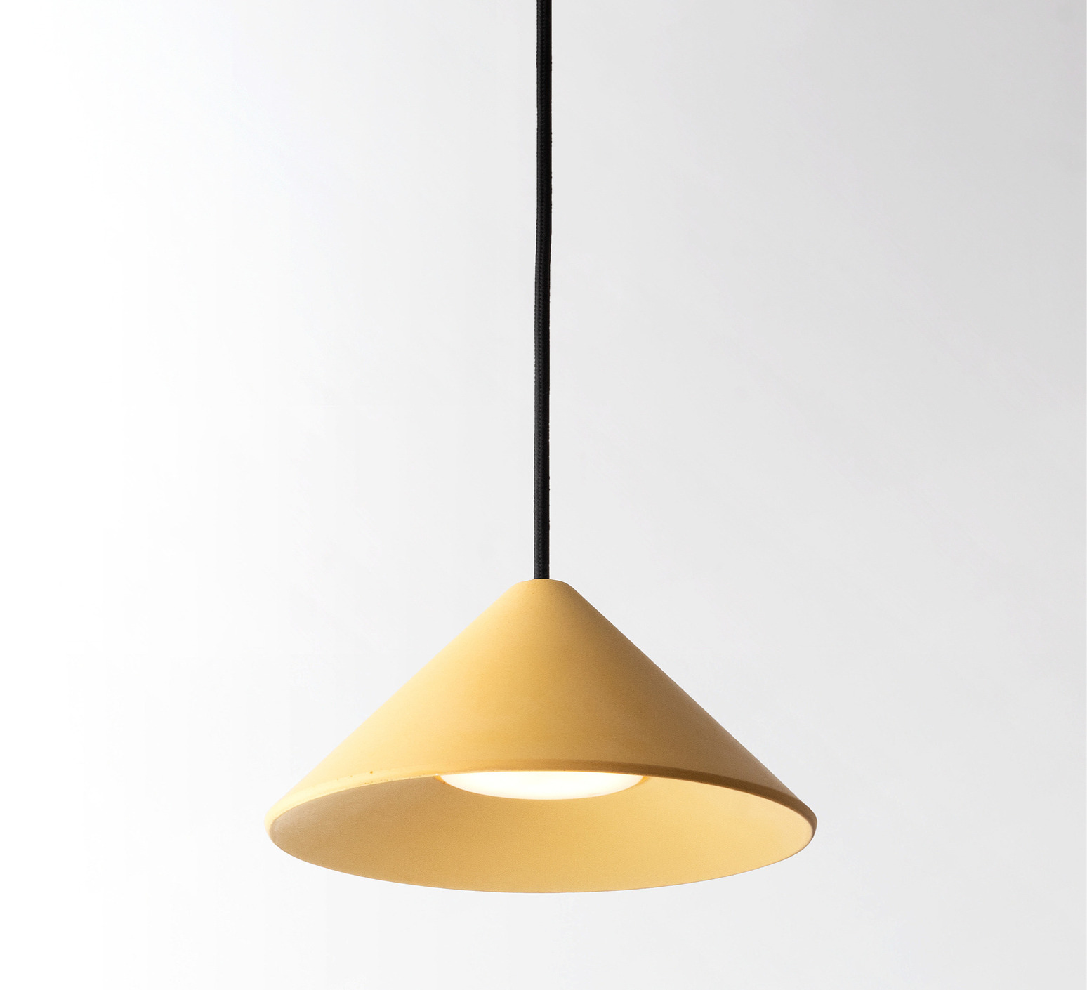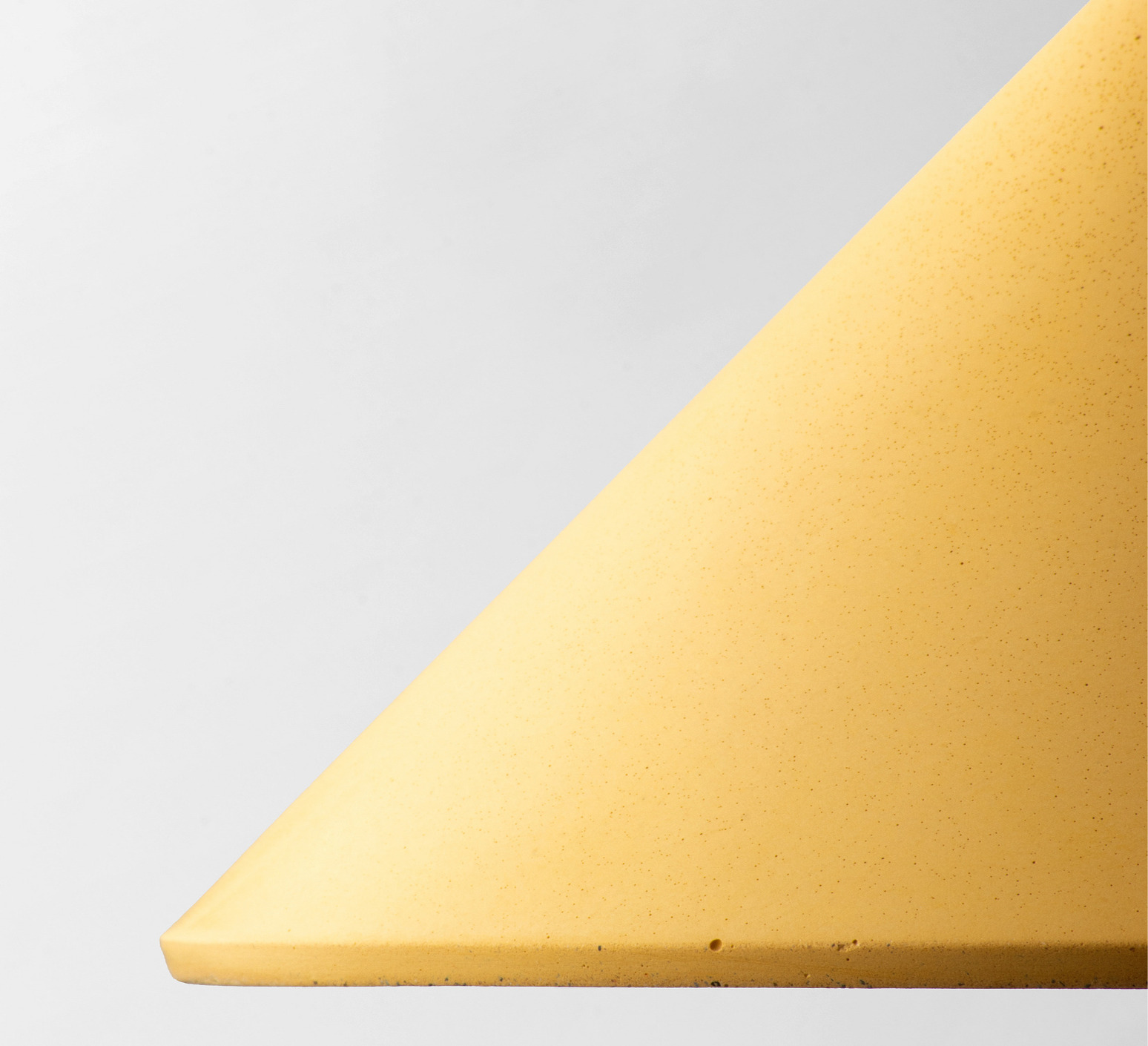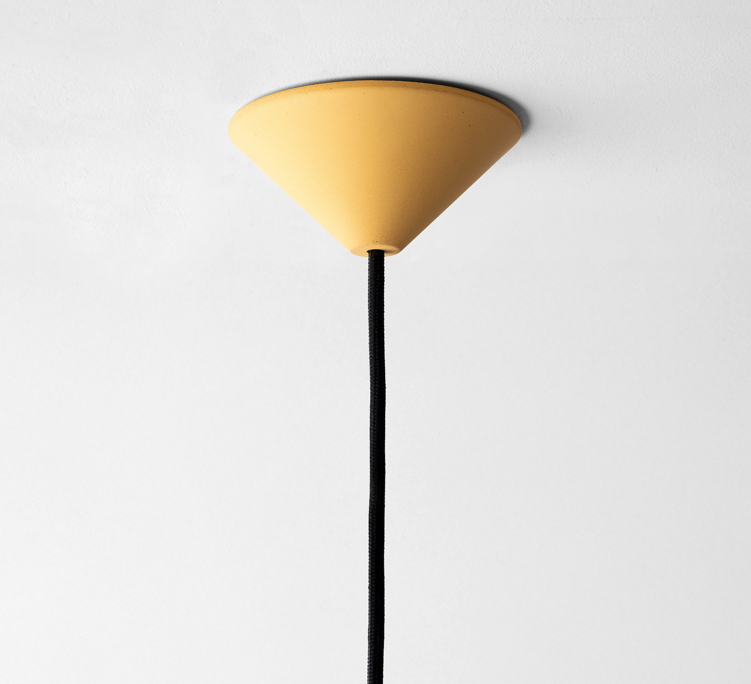 Handcrafted in Italy, this colored concrete suspension features a subtle, warm yellow finish, ideal for adding an elegant decorative touch to a modern interior.