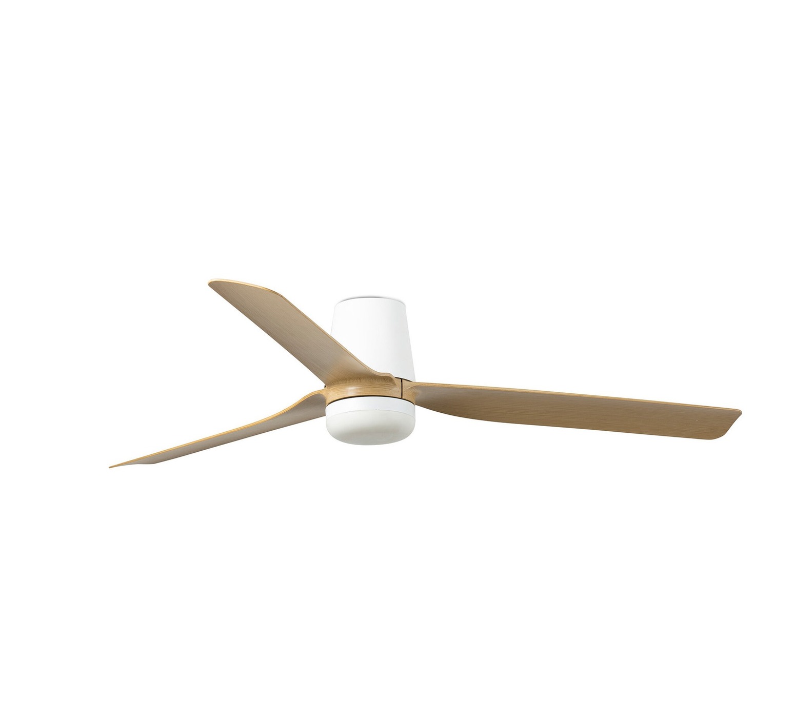 The fan has 3 non-reversible ABS maple-finish blades, and is not suitable for installation on sloping ceilings. It is designed with a matt white steel body and opal glass diffuser, adding an elegant touch to any interior.