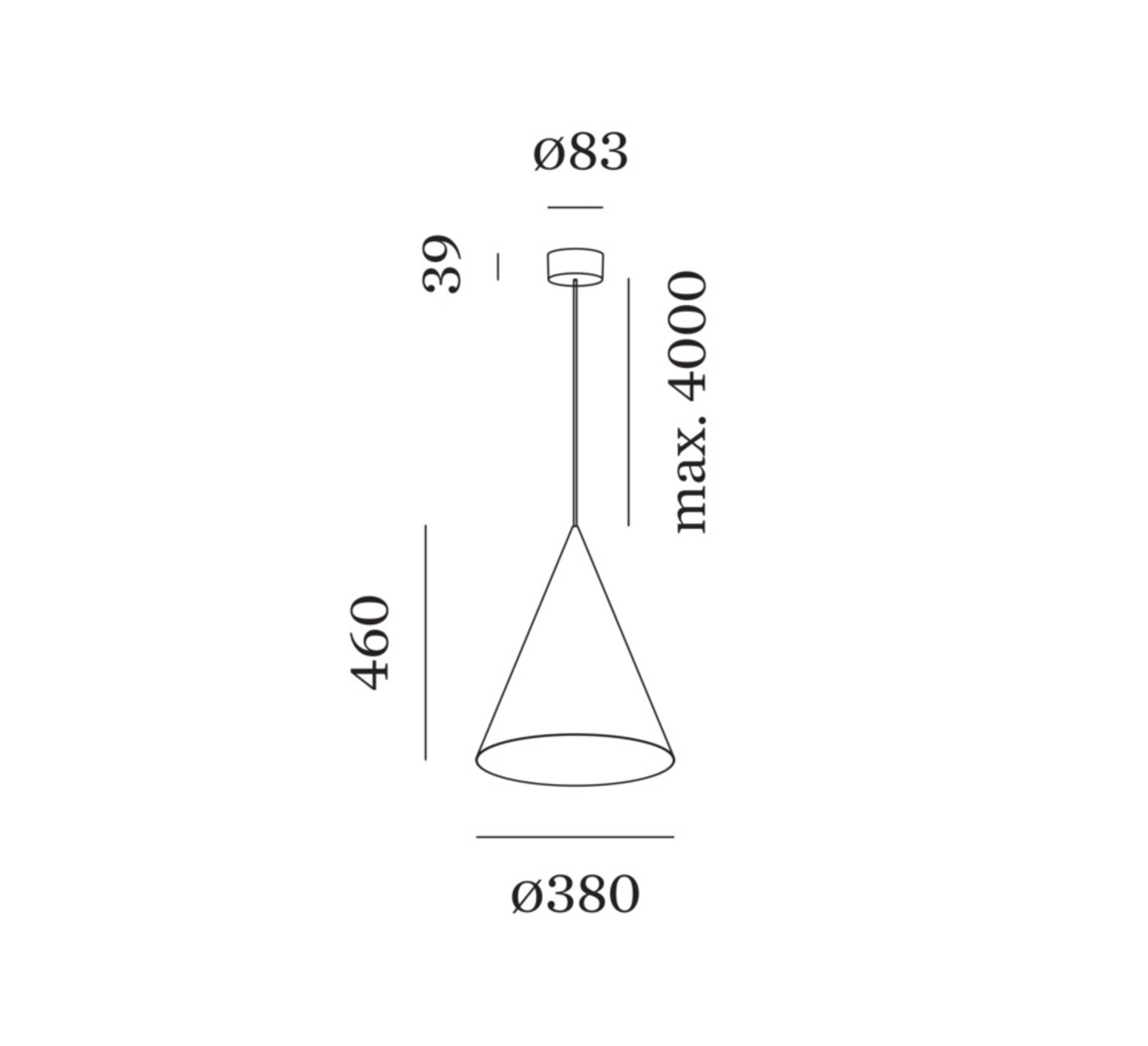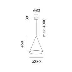 Dinor 1.0 features a 12 W LED module delivering 750 lumens with a color temperature variable between 1800K and 2850K. It measures approximately 38 cm in diameter and 46 cm in height, with a 4 m suspension cable allowing you to adjust the height to suit your needs.