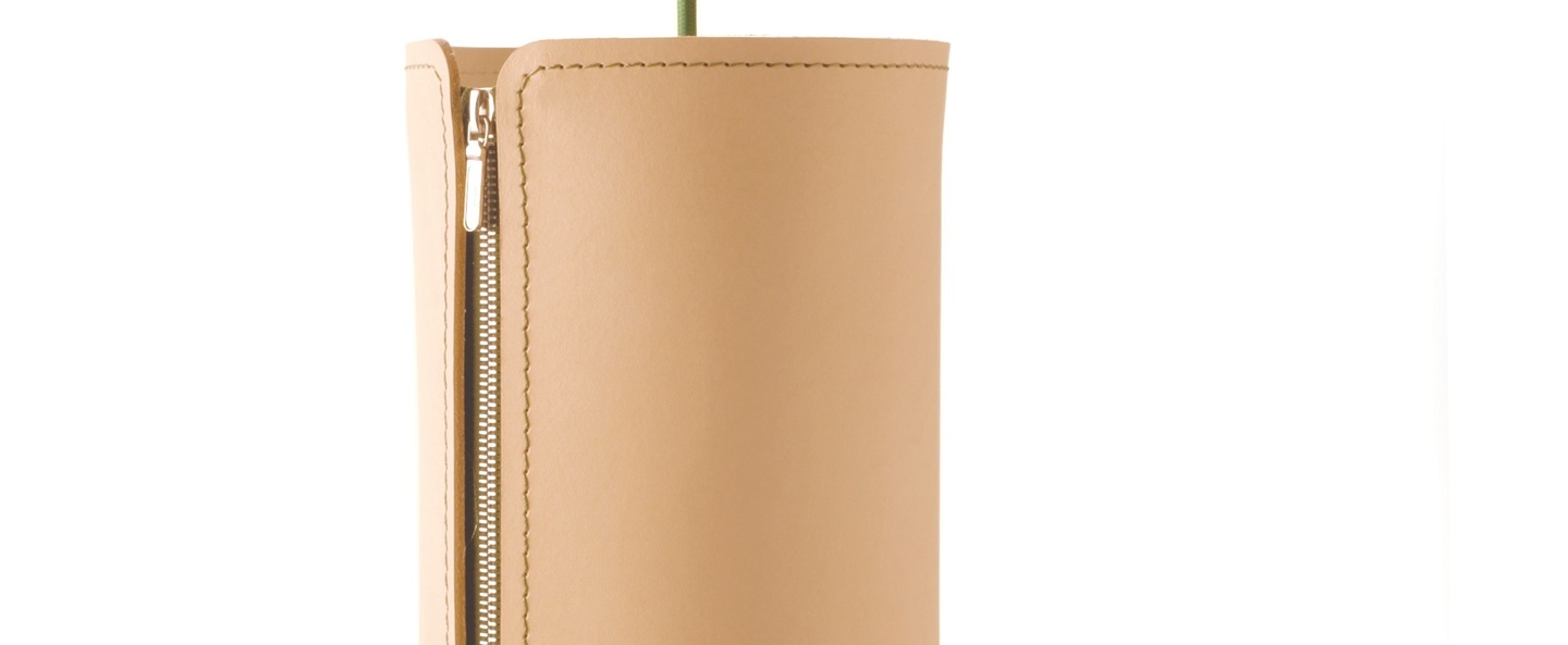 Tubo is a leather pendant light created by Benjamin Lopf for the publishing house Formagenda.