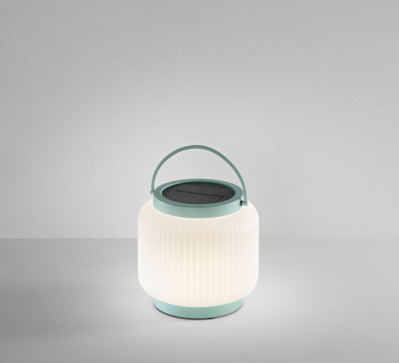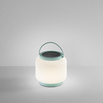 Its cylindrical silhouette, dressed in a sober green and made of metal, expresses a contemporary, uncluttered aesthetic. Installed on a terrace, placed on the ground along a path or near an outdoor lounge, it diffuses a homogeneous light that emphasizes volumes without dazzling. It structures space and creates a soft, controlled atmosphere.