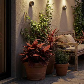 Surface mounted spotlight or wall light, Chelsie 140 , chocolate, IP67, LED, dim, 2200K, 158 lm, Ø14cm, H3,5cm - Lodes
