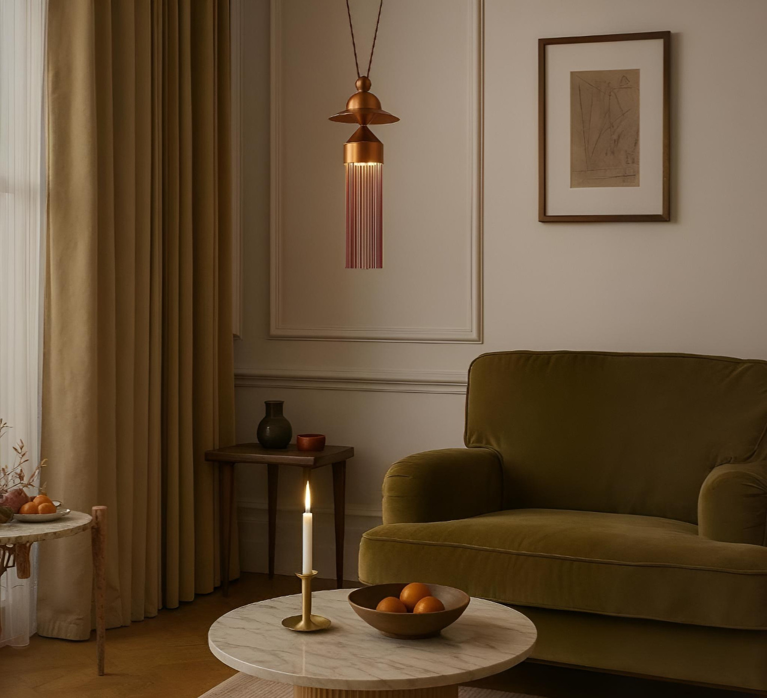 Suspension lamp, N8 tablecloth, Copper, LED, 3000K, 688 lm, Ø15cm, H39cm - Masiero