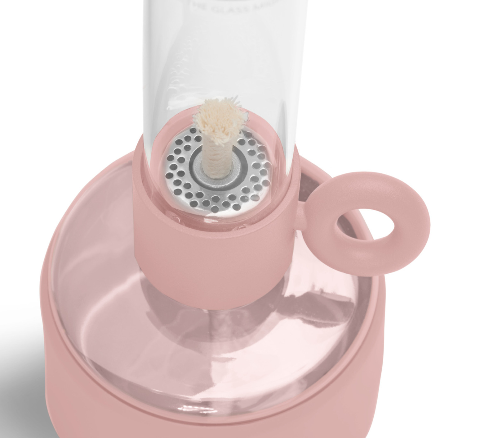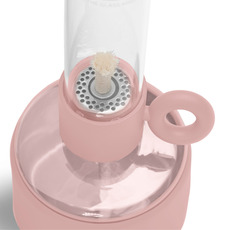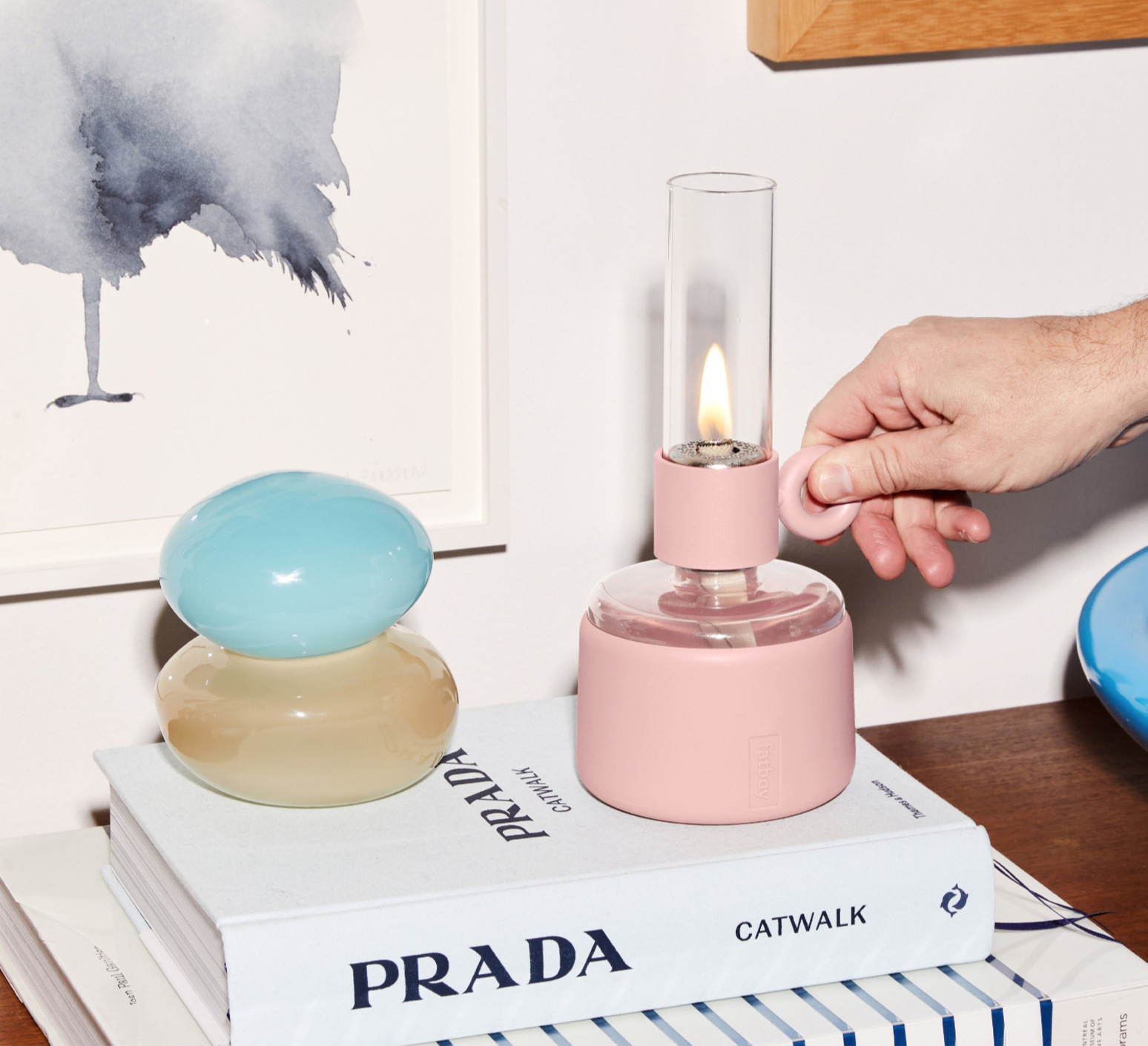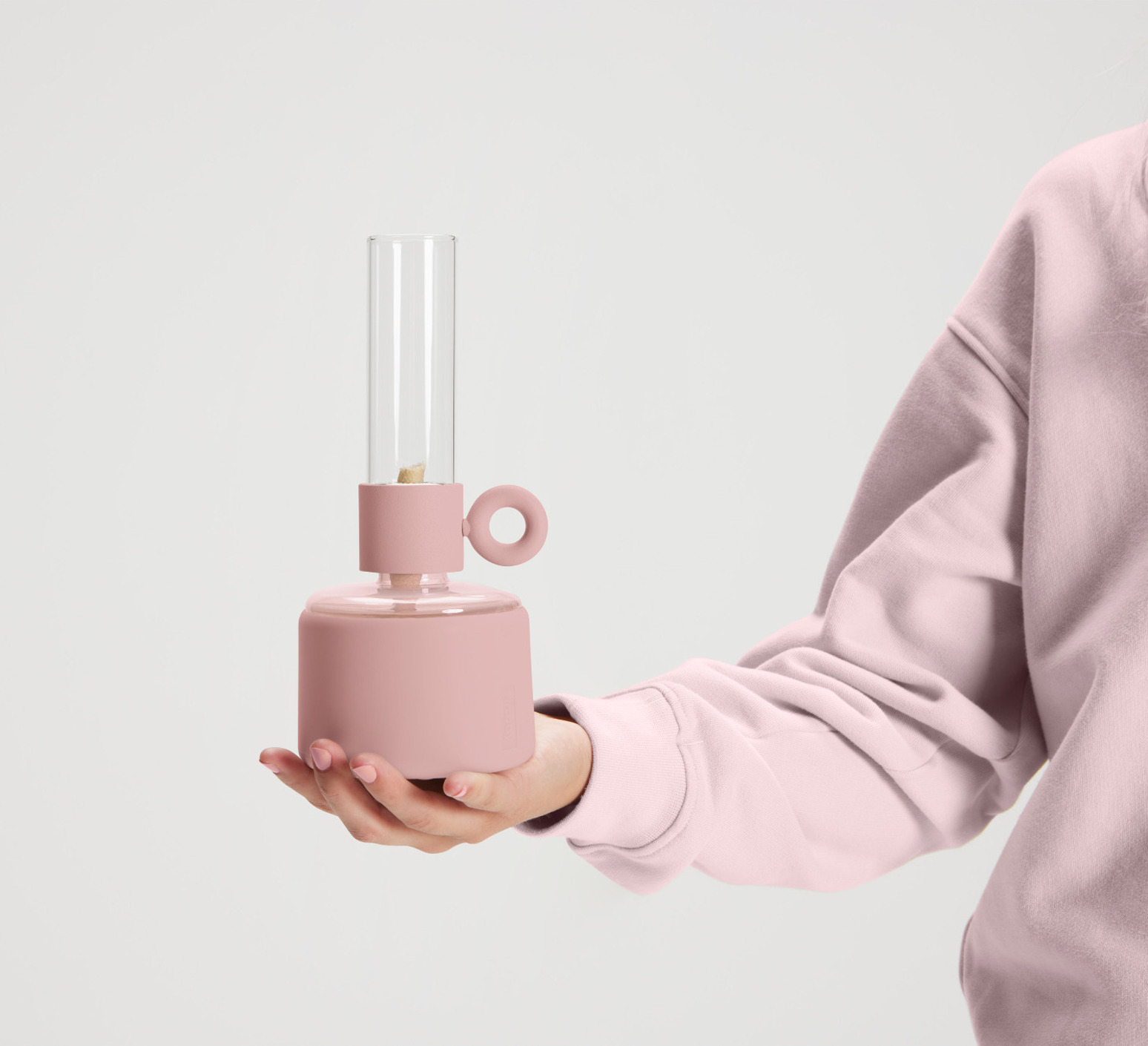 Inspired by old-fashioned oil lamps, the Flamtastique XS takes their emblematic codes: the glass tube, reservoir and wick, but reinterprets them in a design version. Its borosilicate glass base, clad in colored silicone protection, combines with a powder-coated aluminum center to offer a perfect balance between tradition and modernity. Its pink hue adds a touch of freshness and originality, ideal for illuminating a bedside table, console or shelf.