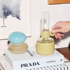 Inspired by old-fashioned oil lamps, the Flamtastique XS takes their emblematic codes: the glass tube, reservoir and wick, but reinterprets them in a design version. Its borosilicate glass base, clad in colored silicone protection, combines with a powder-coated aluminum center to offer a perfect balance between tradition and modernity. Its pale yellow hue adds a touch of freshness and originality, ideal for illuminating a bedside table, console or shelf.