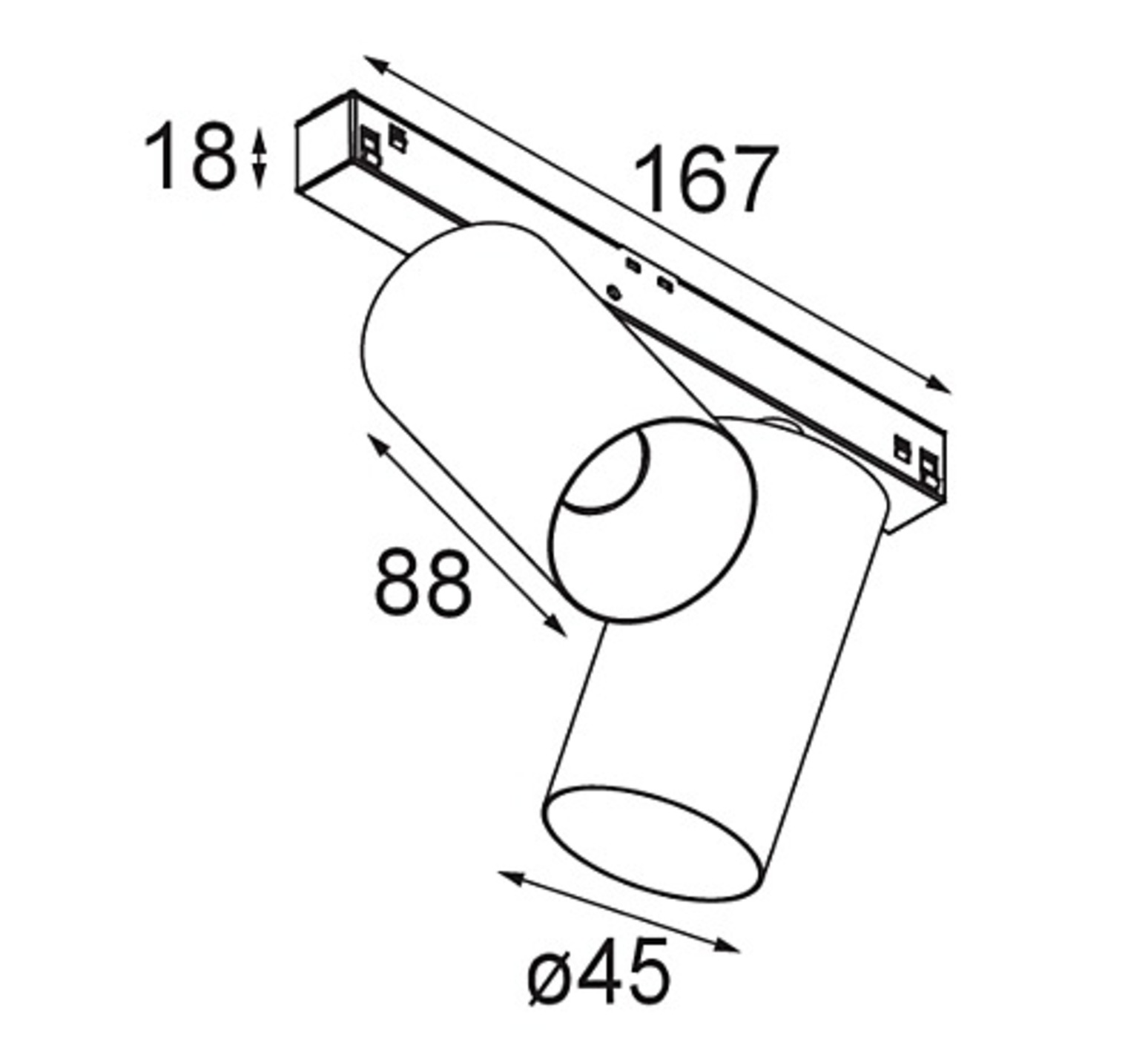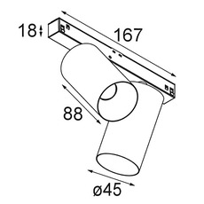 With their cylindrical shape and silver-bronze finish, they can be discreetly installed on tracks like Pista or Modupoint LED. Each spot measures 4.5 cm in diameter for an overall composition of 16.7 cm in length and 10.6 cm in height. This model allows multiple combinations, to structure a space or emphasize a pure ambience.