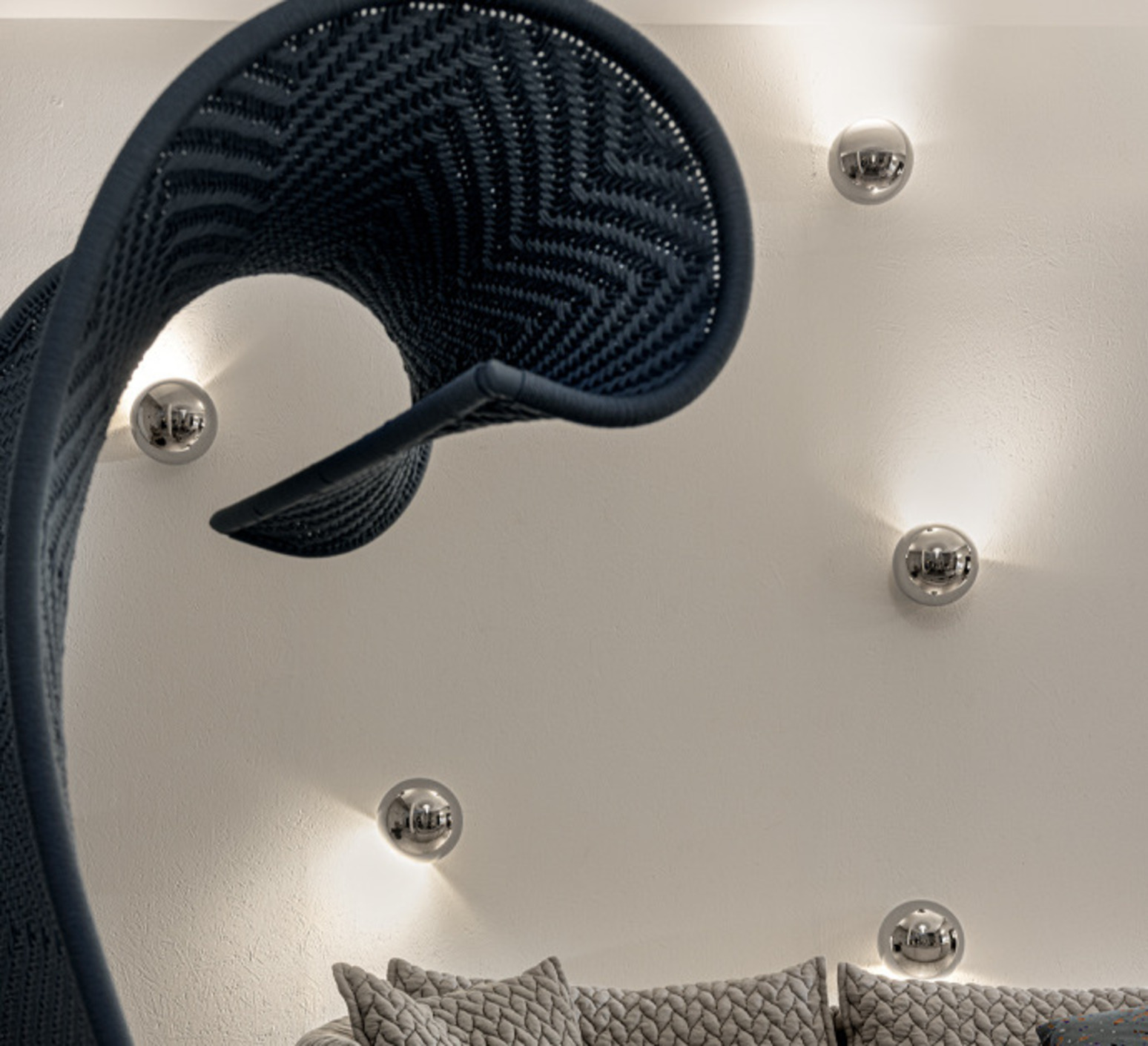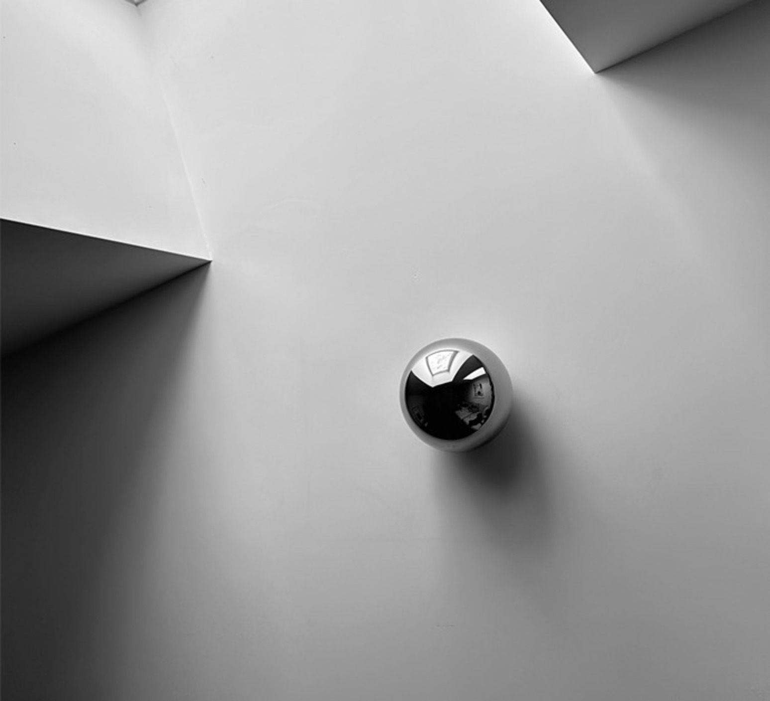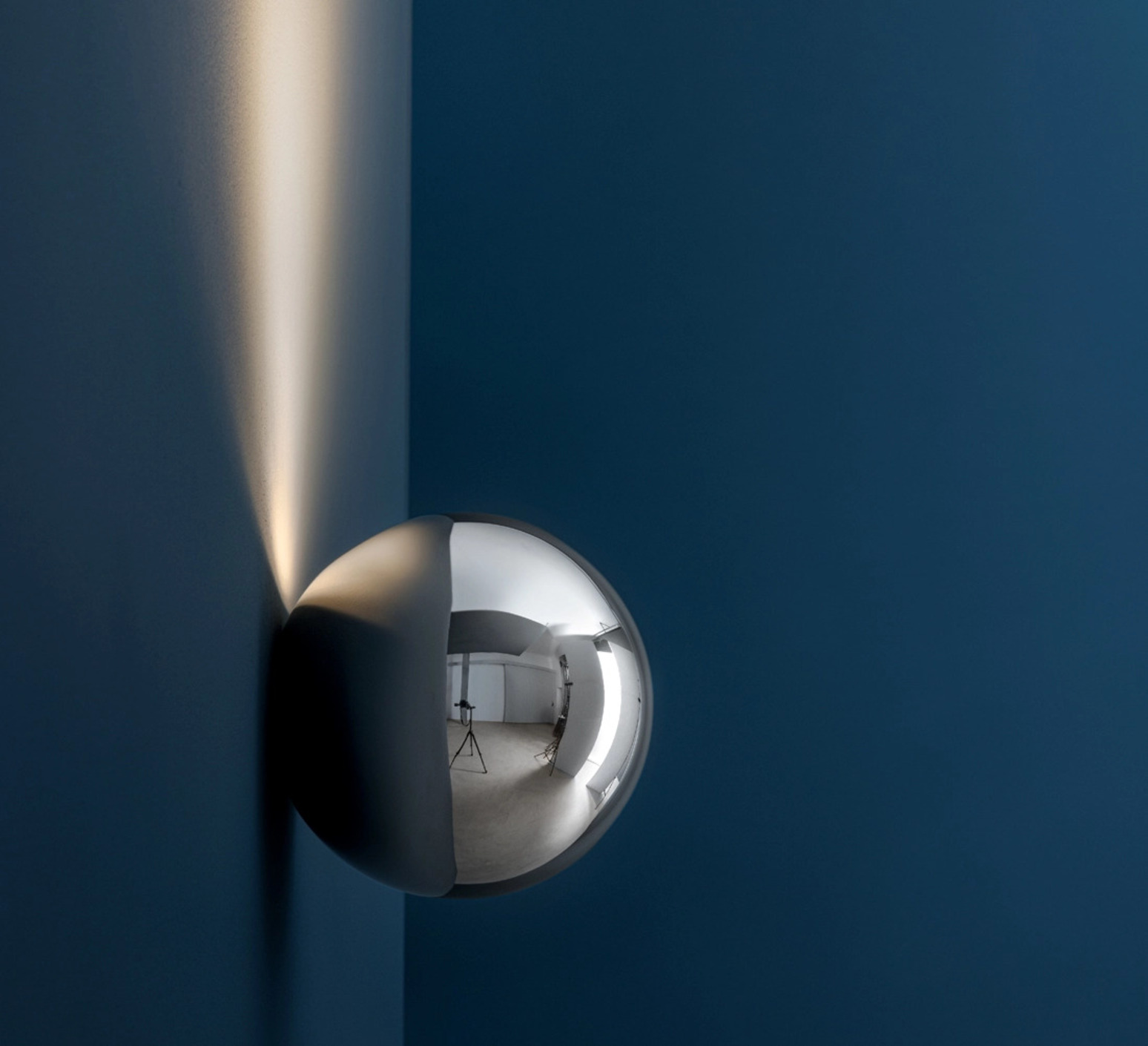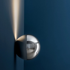 Inspired by Escher's famous self-portrait, Sfera plays with the mirror surface effect and captures the observer's image: a spherical mirror that reflects the room and remains a luminous object even when switched off.
